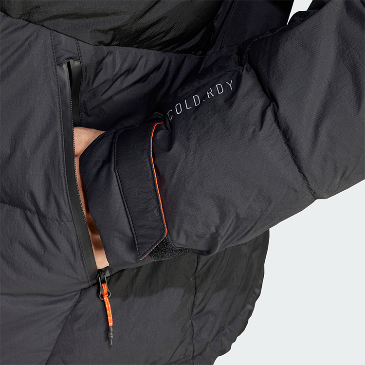 Мужская утепленная куртка Adidas с длинными рукавами и капюшоном, выполнена из ветронепроницаемого материала с наполнителем из пуха. Отлично подходит для активного отдыха и повседневного использования в холодное время года.