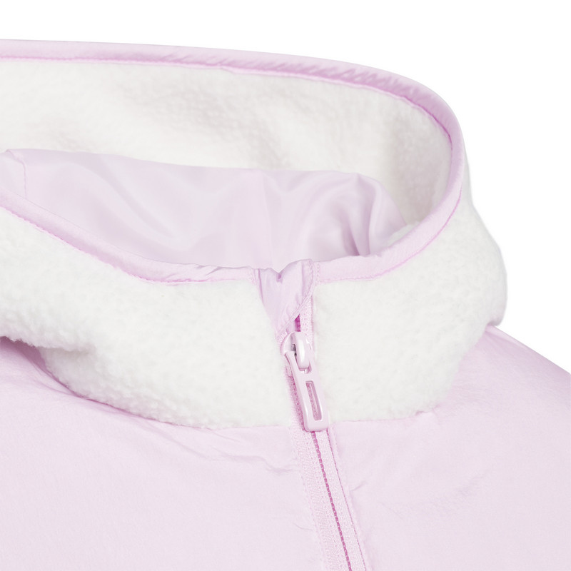 Детский пуховик Adidas с капюшоном и длинными рукавами, выполненный в комбинированной цветовой гамме, теплый и комфортный для повседневного ношения в холодное время.