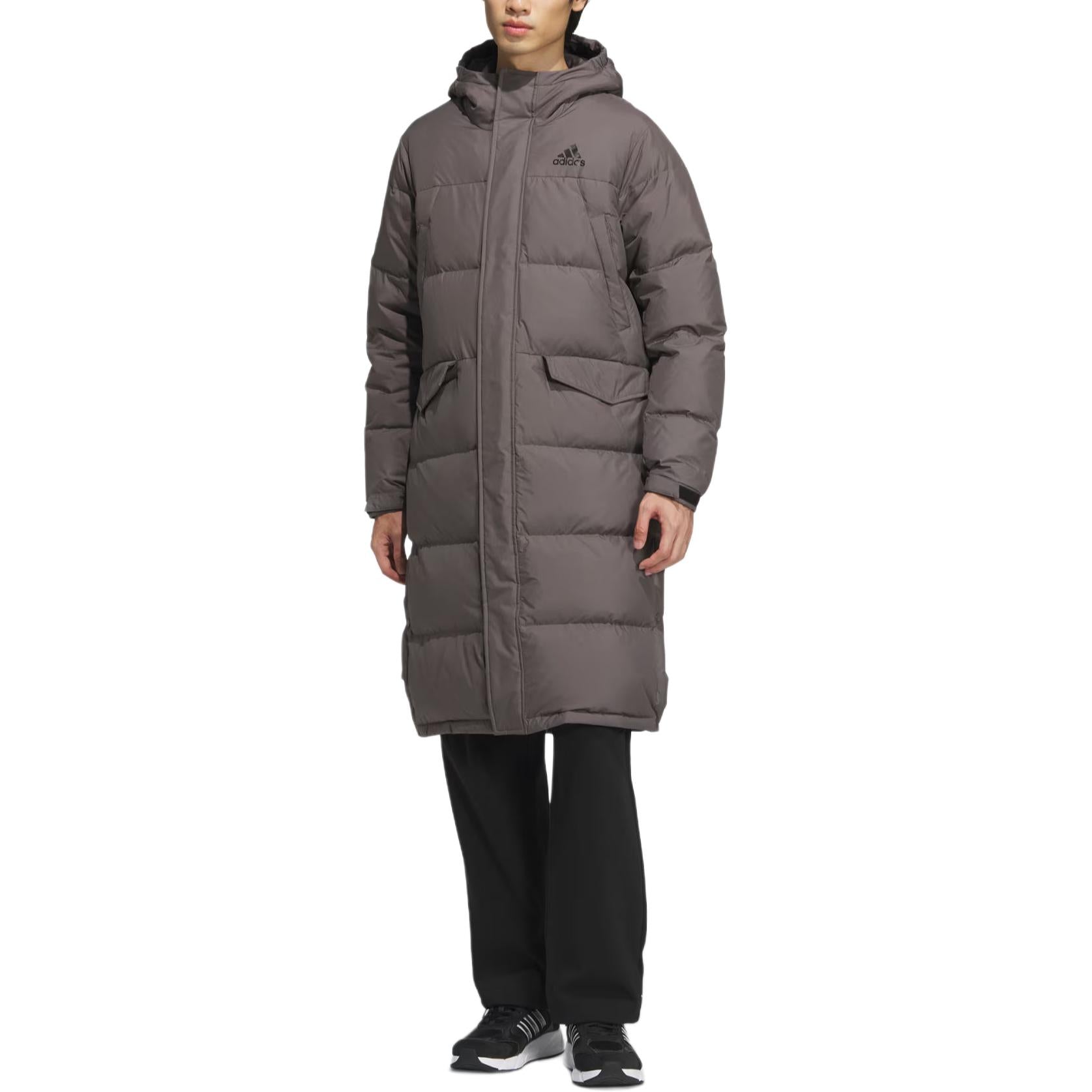 Удобный длинный утепленный пуховик Adidas, универсальный стиль, наполнитель из утиного пуха, черного цвета.