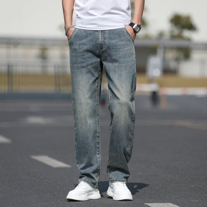 Мужские джинсы Antioffice в стиле американского ретро стритвира. Свободный прямой крой и оригинальный вышитый дизайн создают модный и комфортный образ для повседневной носки.
