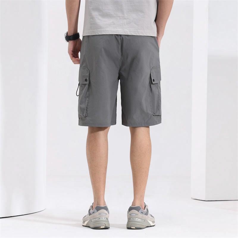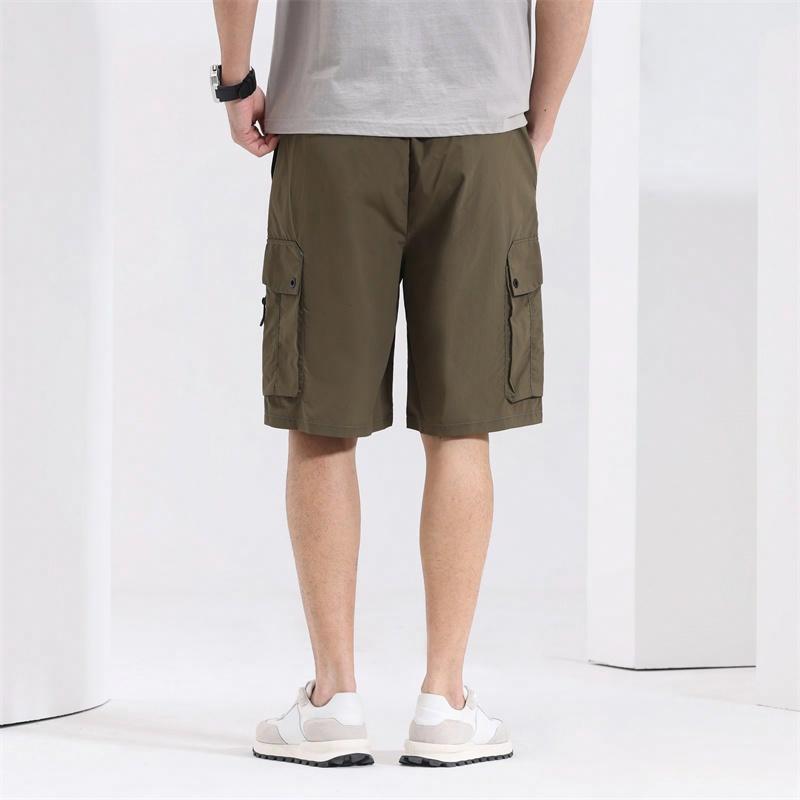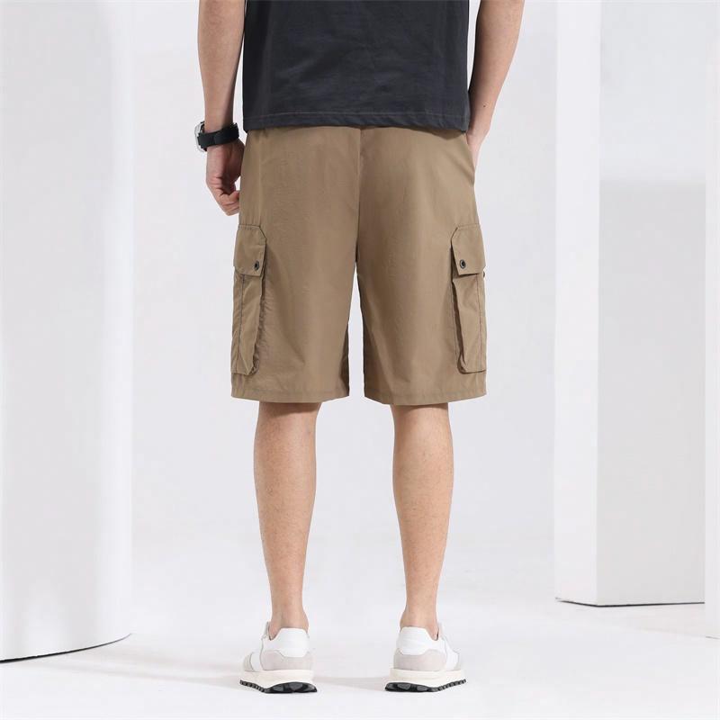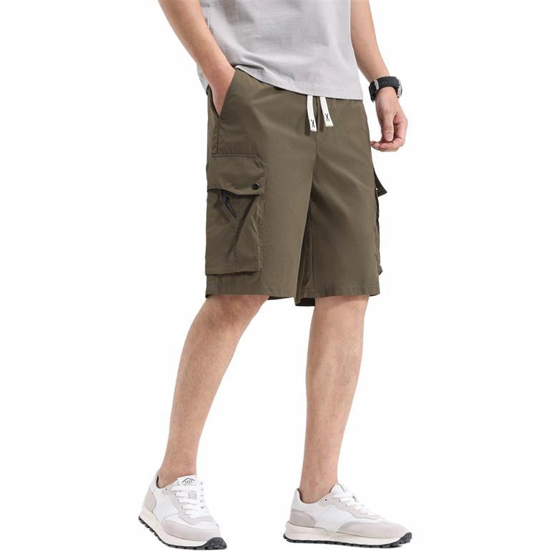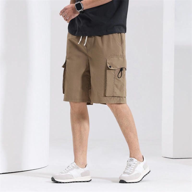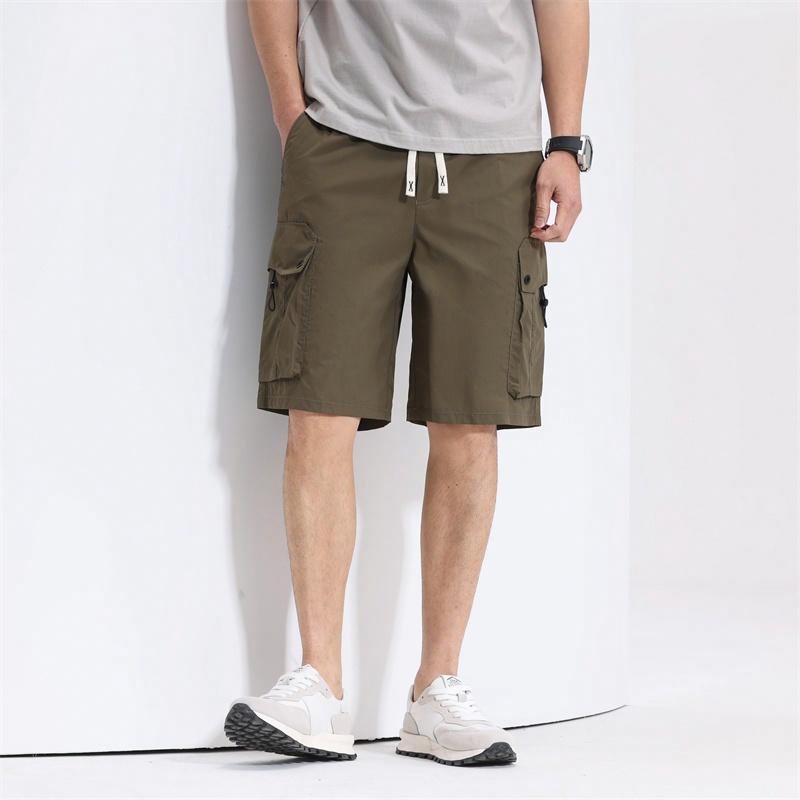 Мужские спортивные шорты средней длины в стиле американской уличной моды. Модель прямого кроя с поясом на шнурке для регулировки, выполнена из легкого синтетического материала.