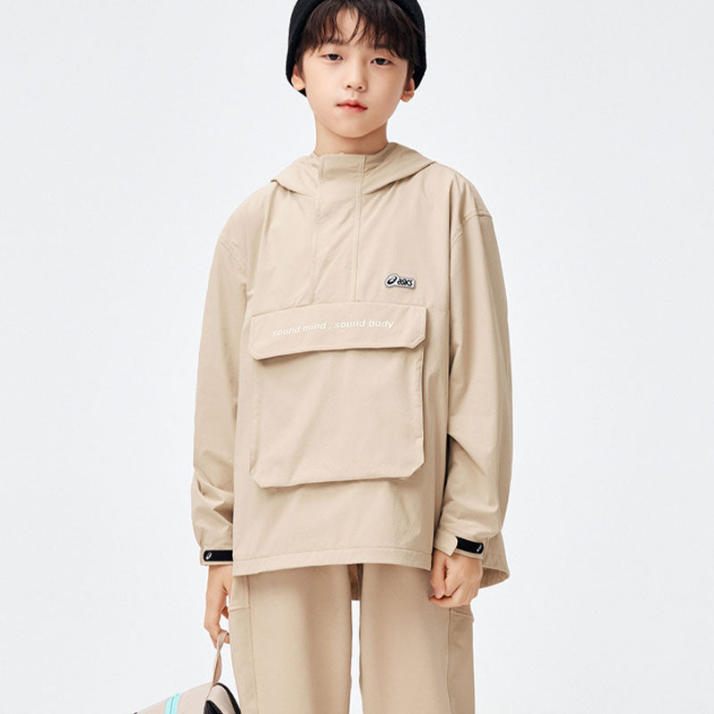 Лёгкая и удобная детская куртка с капюшоном и длинными рукавами, выполненная с функциональным принтом и свободным кроем. Подходит для активного отдыха и повседневной носки, обеспечивая комфорт и свободу движений.