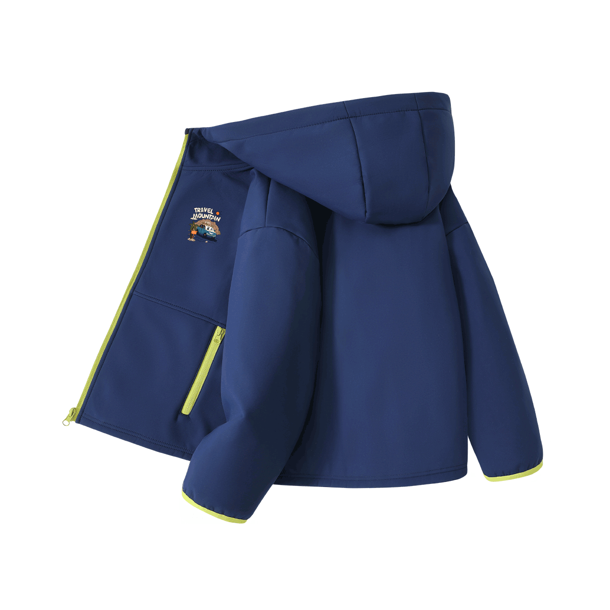 Тёплая детская куртка для мальчиков из мягкого софтшелла, выполненная в стиле «лесной» с капюшоном. Широкий крой и дышащий полиэстер обеспечивают комфорт и свободу движений в холодное время года.