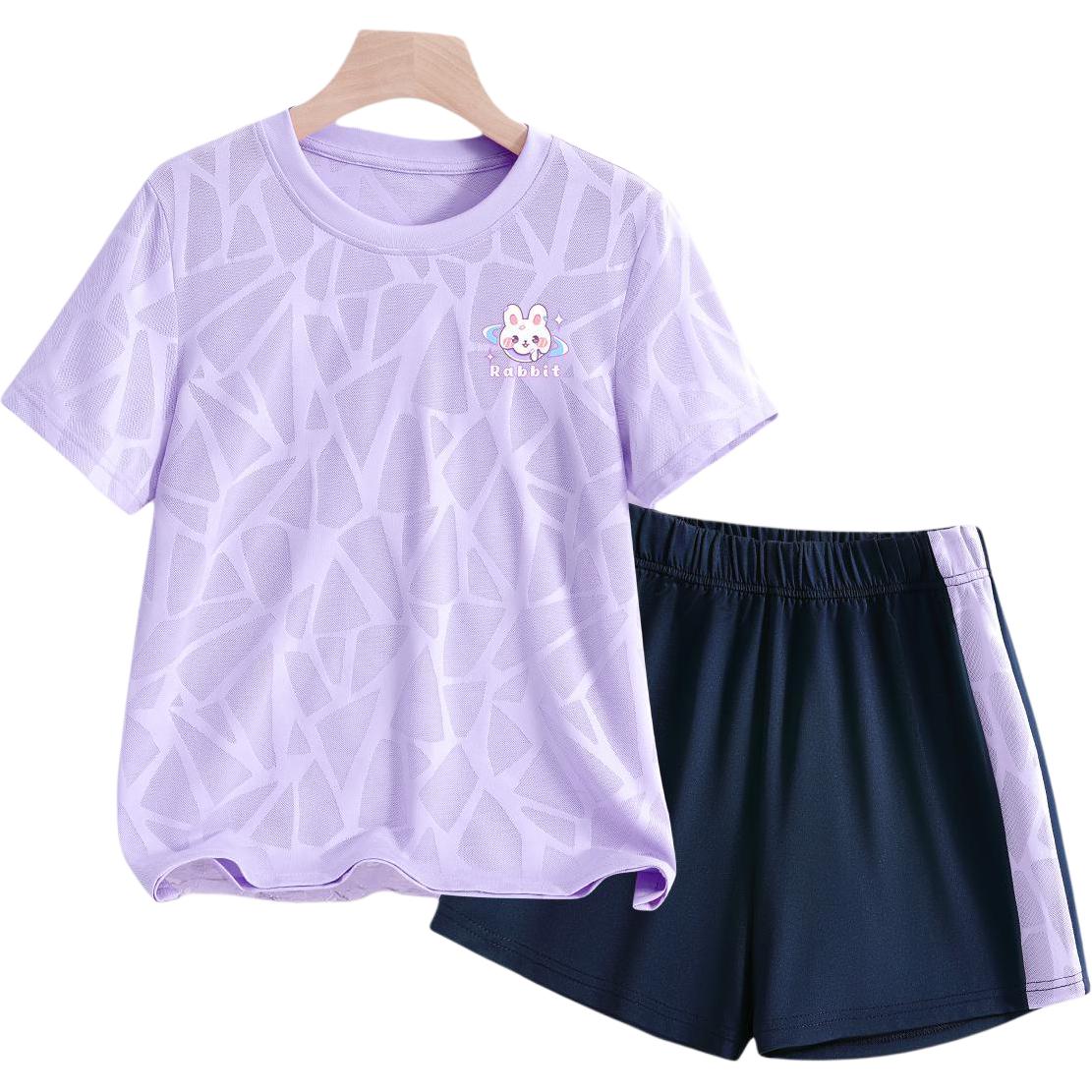 Лёгкий и удобный летний комплект для девочек, включающий футболку с коротким рукавом и шорты с эластичной талией. Эластичный и дышащий материал обеспечивает комфорт и свободу движений для активного отдыха.