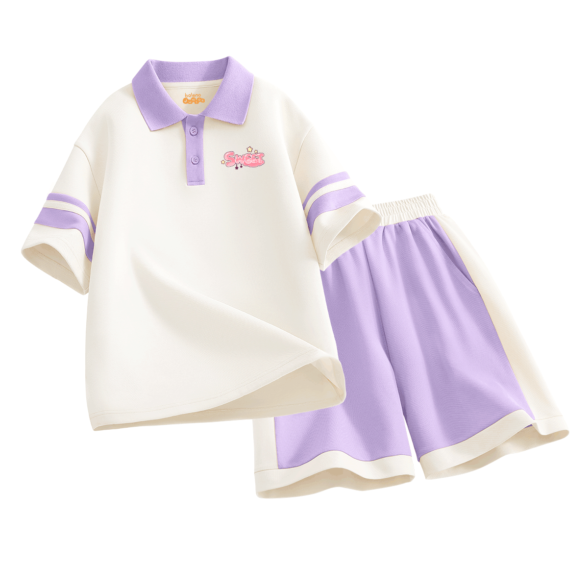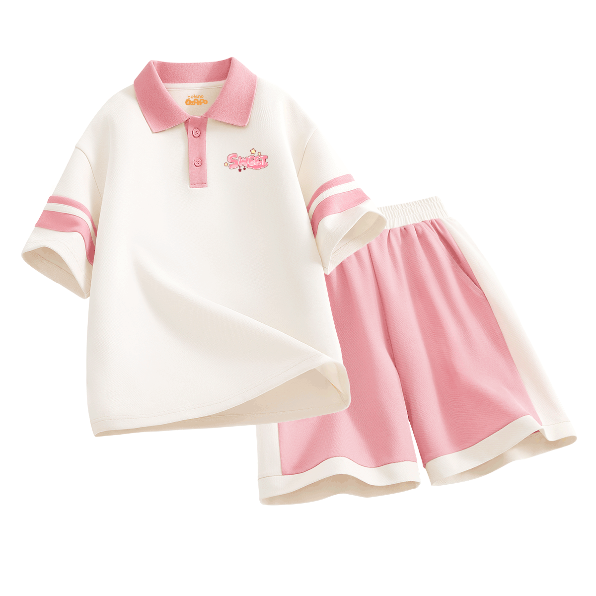 Лёгкий летний комплект для девочек с футболкой поло с коротким рукавом и шортами до колена на эластичной талии. Мягкий и дышащий материал обеспечивает комфорт и свободу движений для активного отдыха.