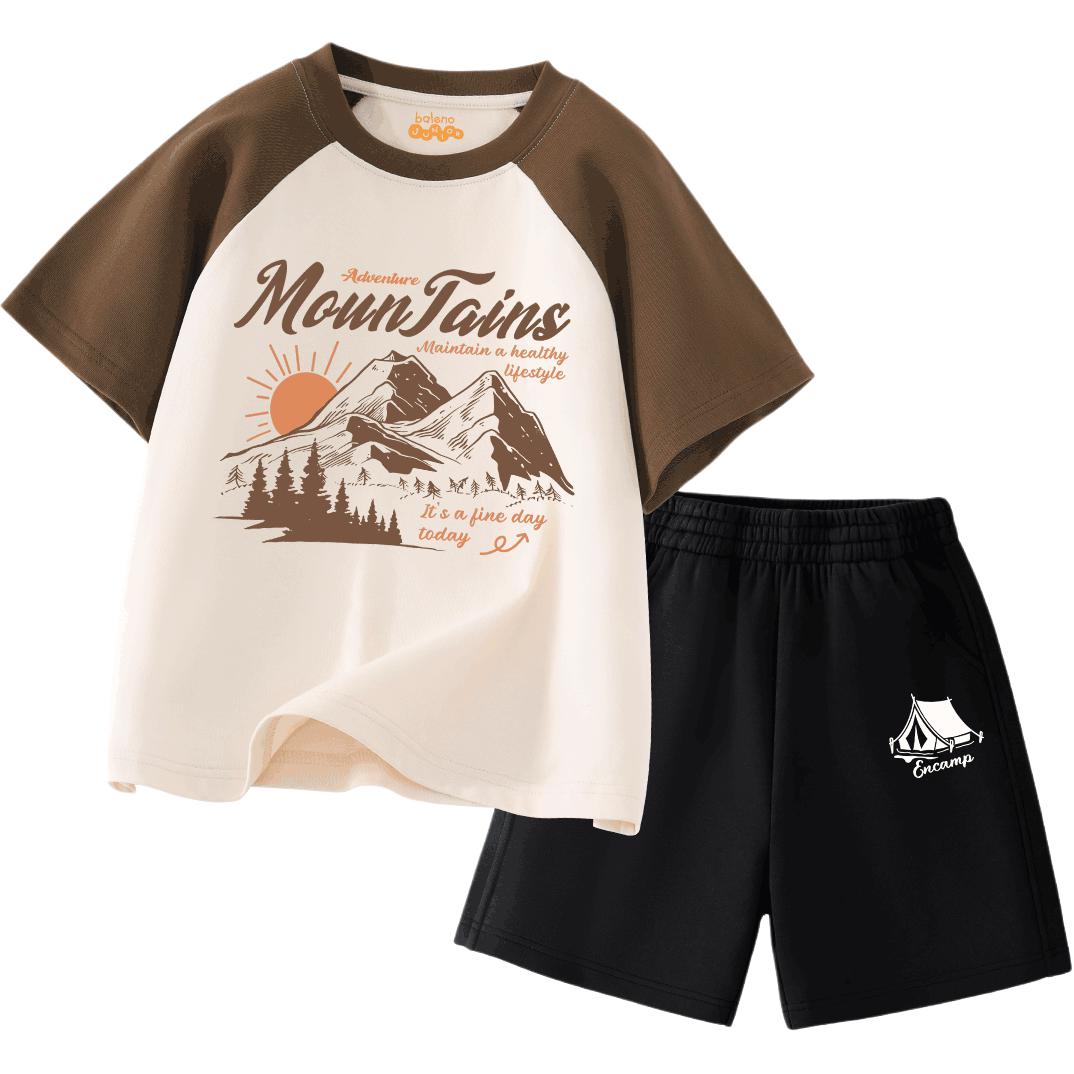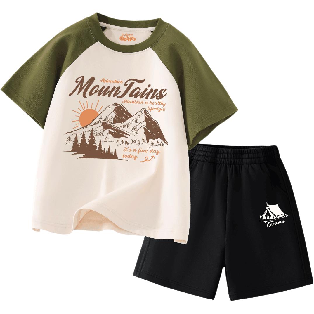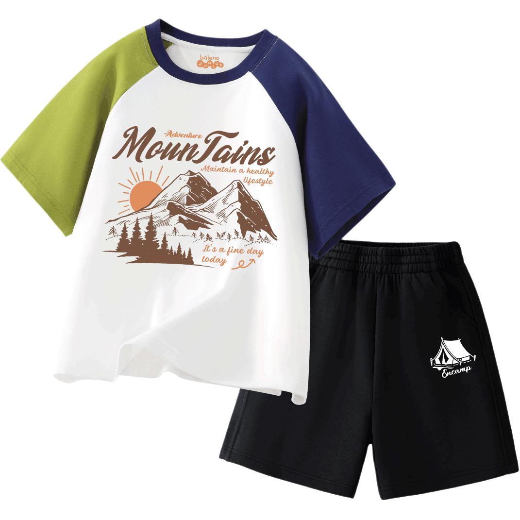 Лёгкий и удобный летний комплект для мальчиков, включающий футболку с коротким рукавом и шорты до колена с эластичной талией. Мягкий хлопок и свободный крой обеспечивают комфорт и свободу движений для активного отдыха на природе.