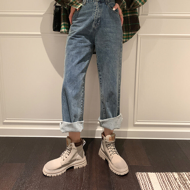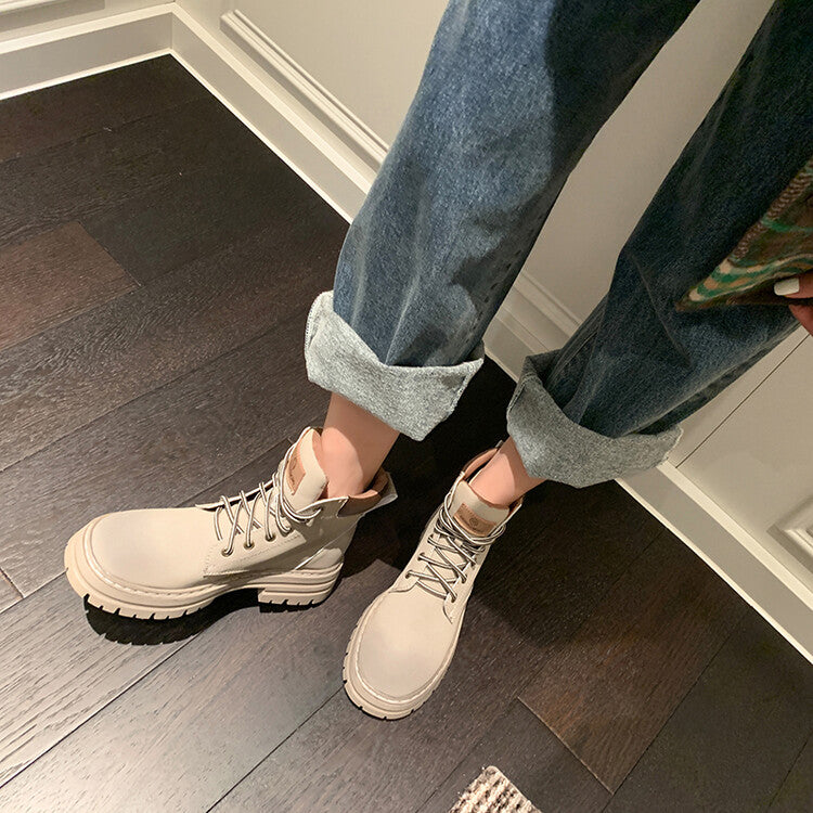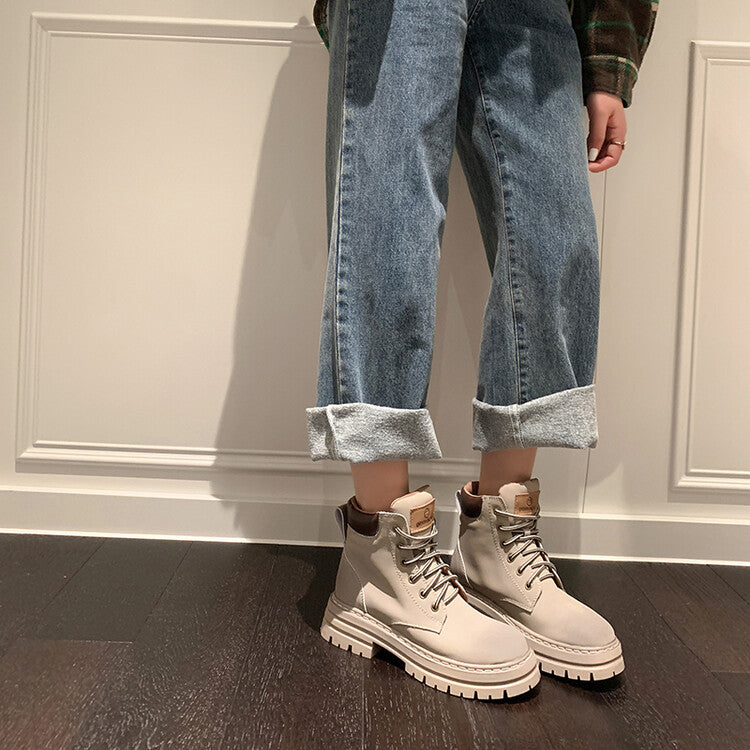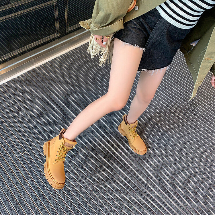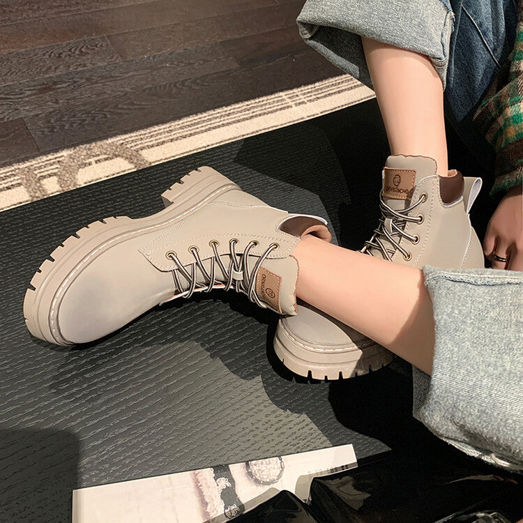 Balletcat воловьей кожи шнуровка рабочая одежда модные личности высота увеличить удобные модные тенденции сто теплый короткий мартин сапоги 5 см женщина