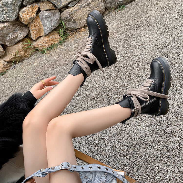 Balletcat воловьей кожи шнуровка ретро шик авангард темперамент высота увеличивается мода тенденция универсальный повседневная короткие сапоги 4,5 см женщины