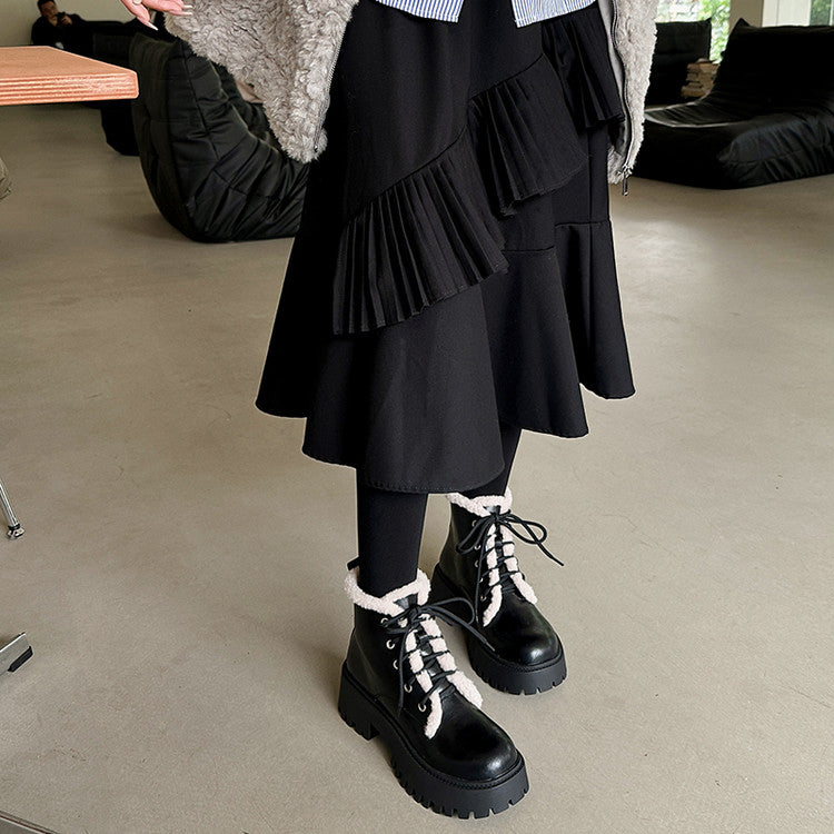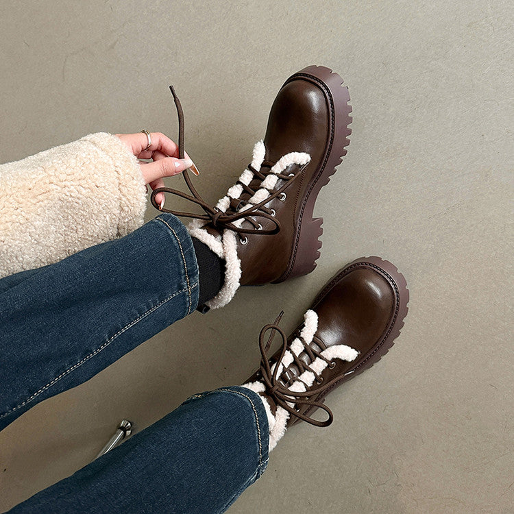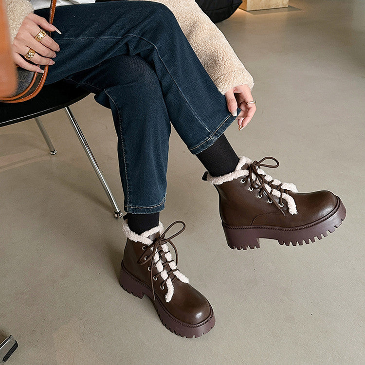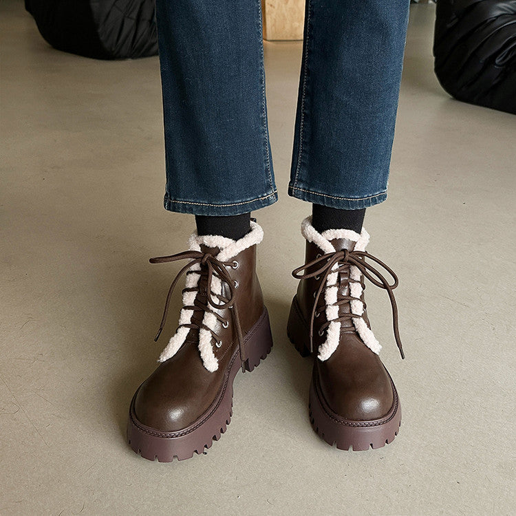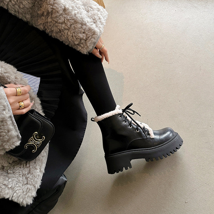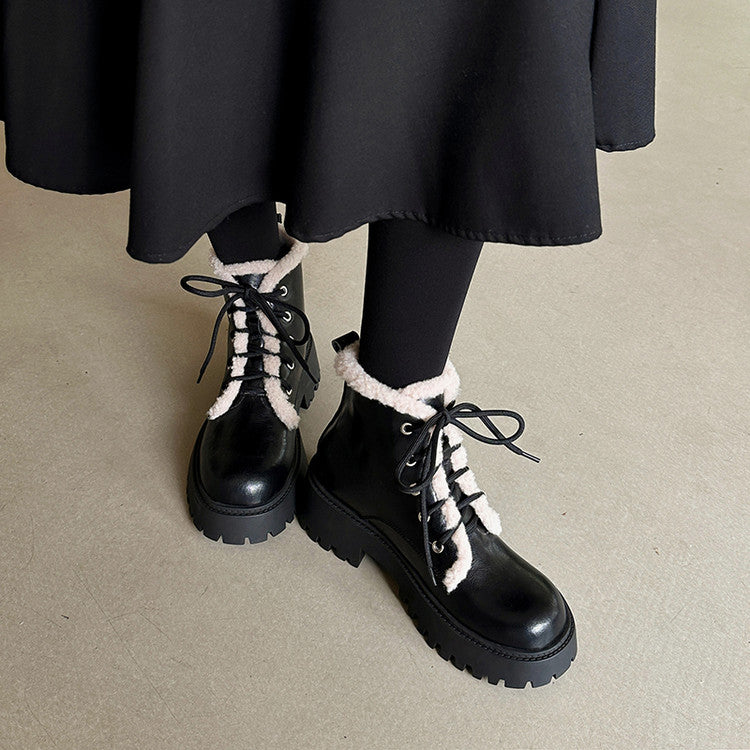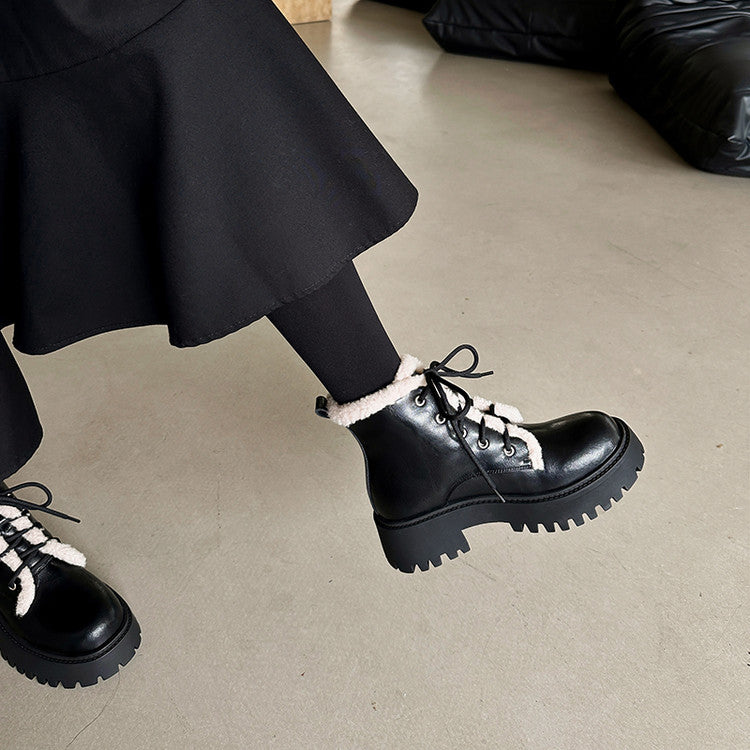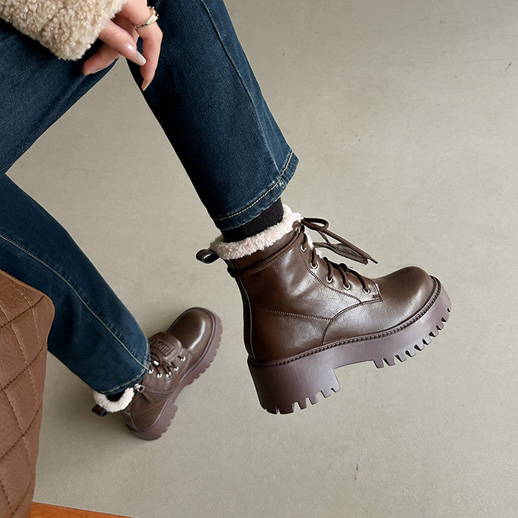 Balletcat коровья кожа толстая подошва мех шик padded темперамент сладкий дата носить удобный мода модные универсальный 11 см мартин сапоги 7 см женщины
