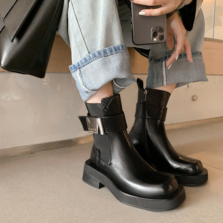 Balletcat cow leather personalised trend metal buckle fashion short boots 6cm women's
