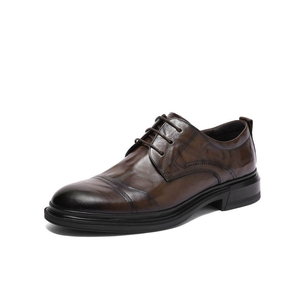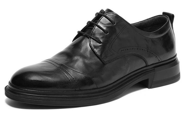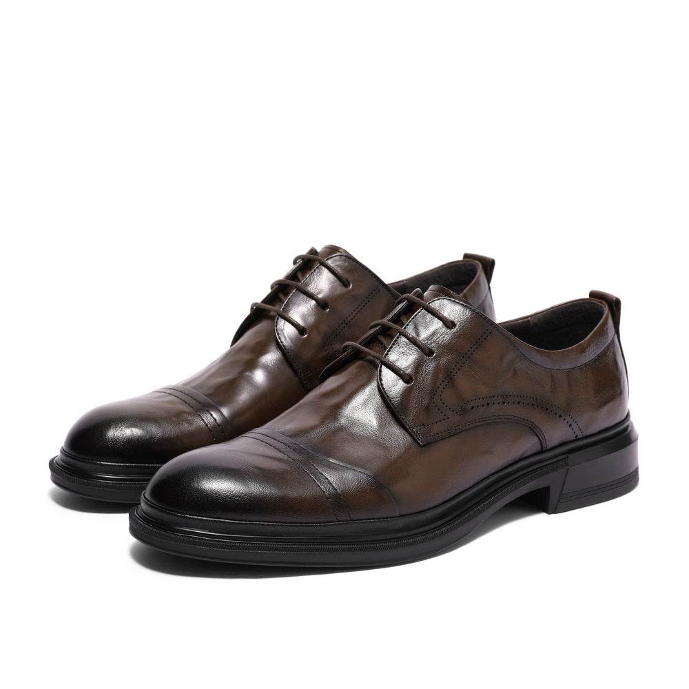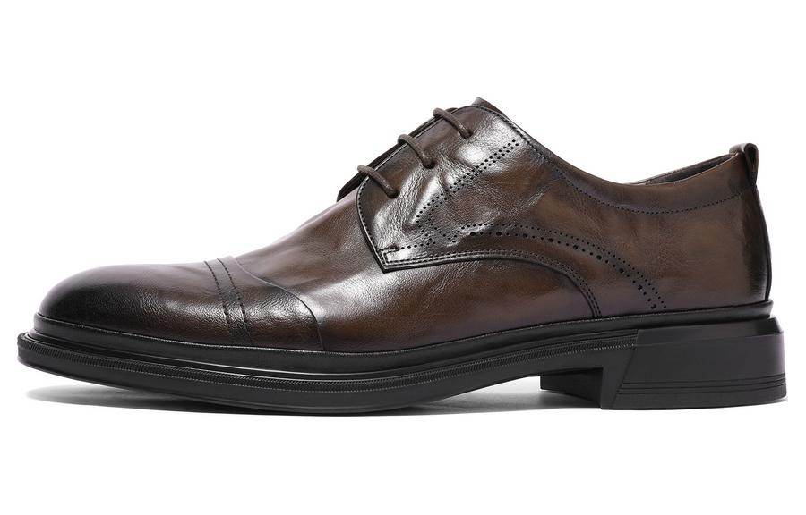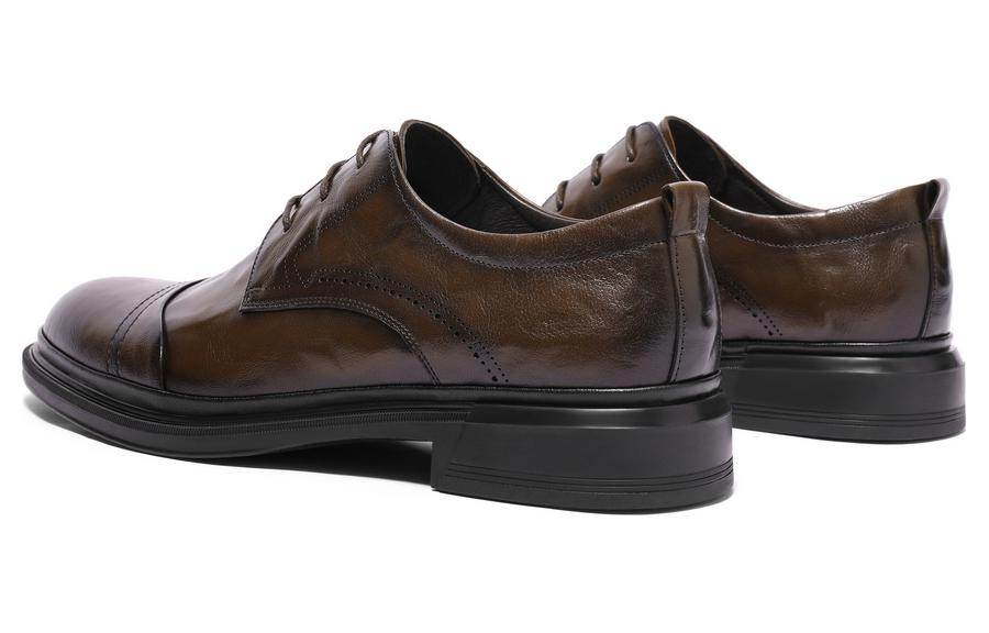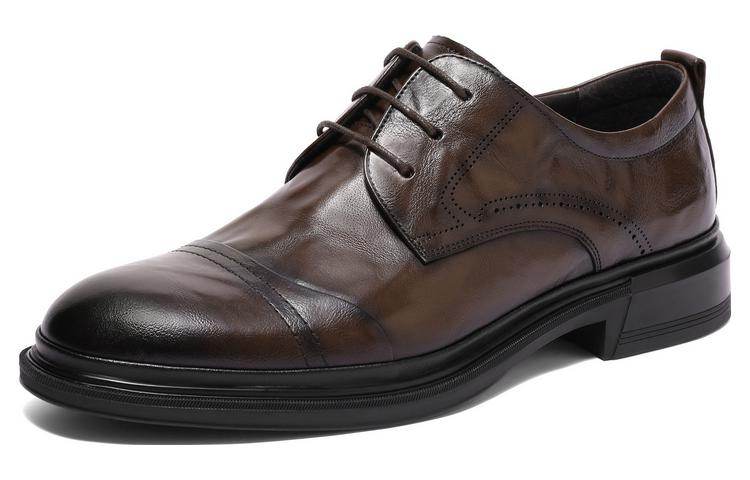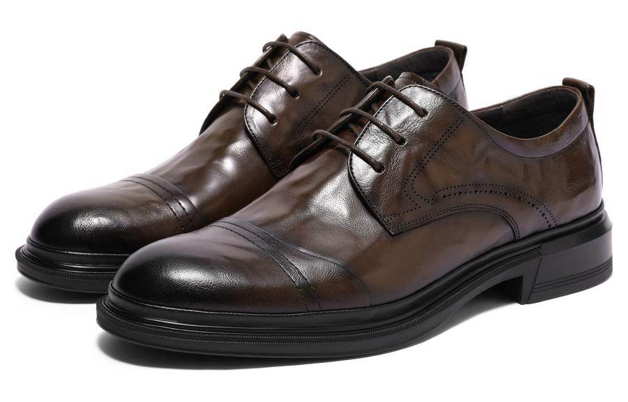 Мужские формальные туфли из воловьей кожи с художественной текстурой из серии "Пригородный Бизнес". Эти свадебные туфли в ретро-стиле выполнены с плиссированным дизайном и в потертом цвете, обеспечивают комфорт и дышащие свойства. Они износостойкие и противоскользящие, что делает их идеальными для формальных событий и повседневного ношения.