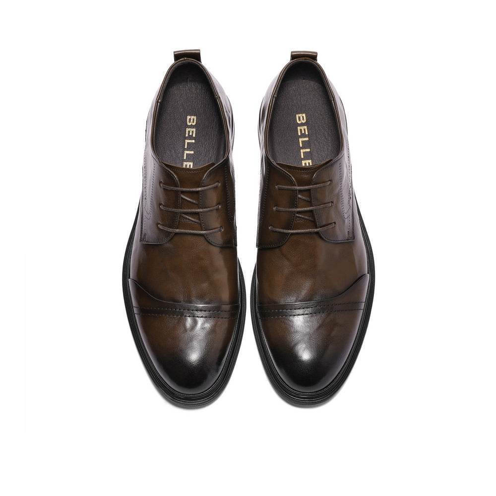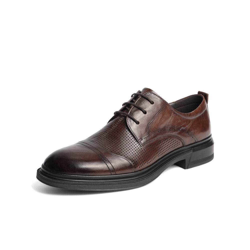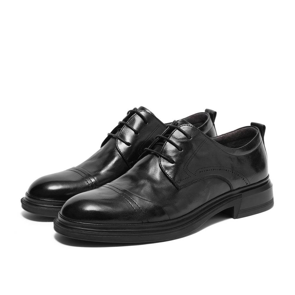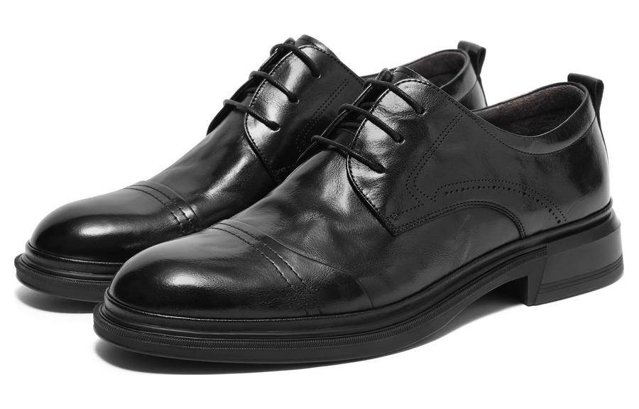 Мужские формальные туфли из воловьей кожи с художественной текстурой из серии "Пригородный Бизнес". Эти свадебные туфли в ретро-стиле выполнены с плиссированным дизайном и в потертом цвете, обеспечивают комфорт и дышащие свойства. Они износостойкие и противоскользящие, что делает их идеальными для формальных событий и повседневного ношения.