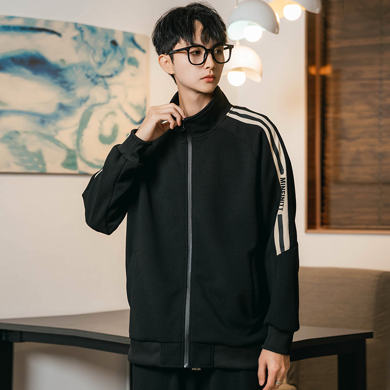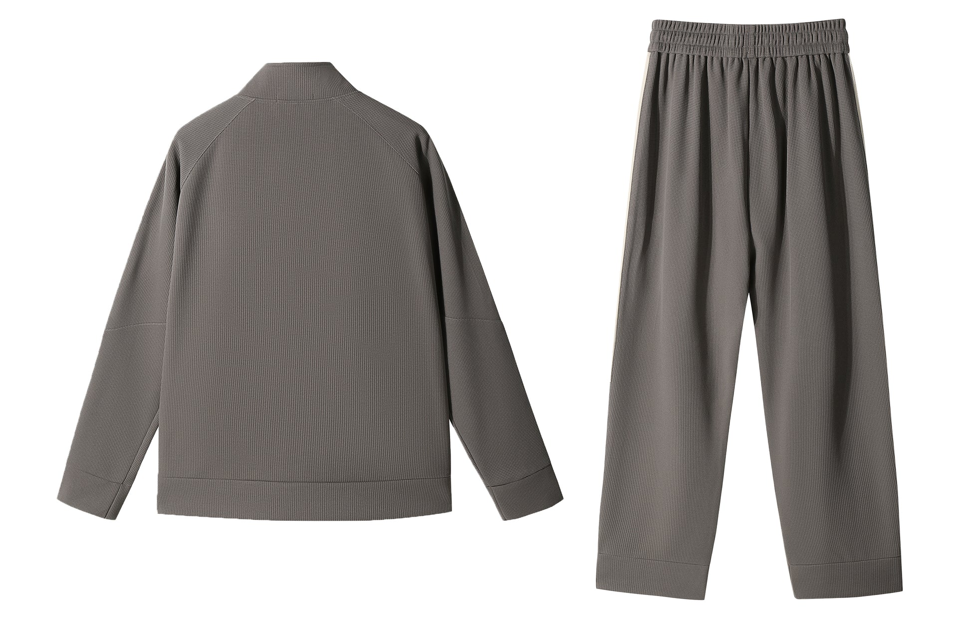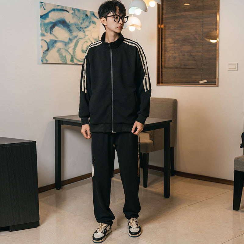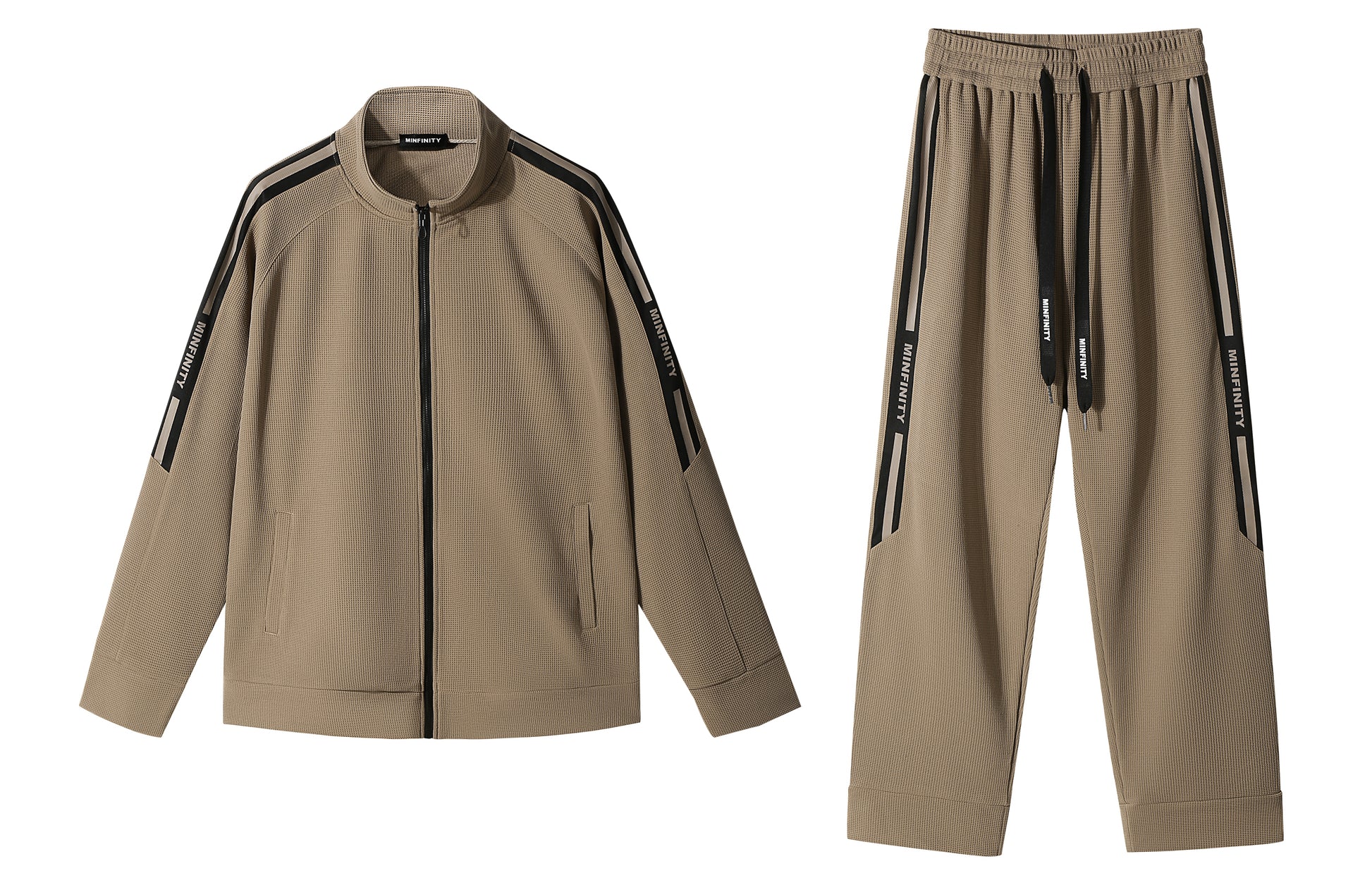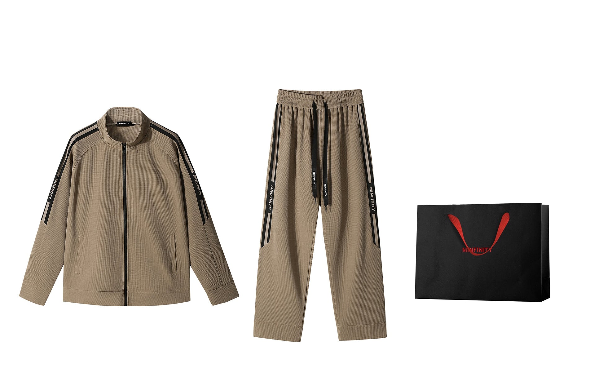 Стильный спортивный костюм Minfinity с буквенным принтом и воротником‑стойкой. Толстовка на молнии с опущенным плечом и свободным кроем обеспечивает комфорт и современный вид. Брюки прямого силуэта со шнурком на талии дополнены декоративными полосами и драпировкой. Модель выполнена в премиальном стиле и подходит для повседневной носки и активного отдыха.