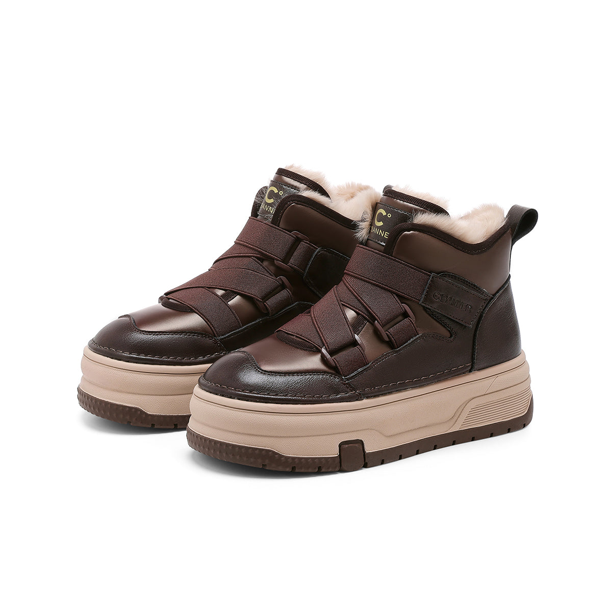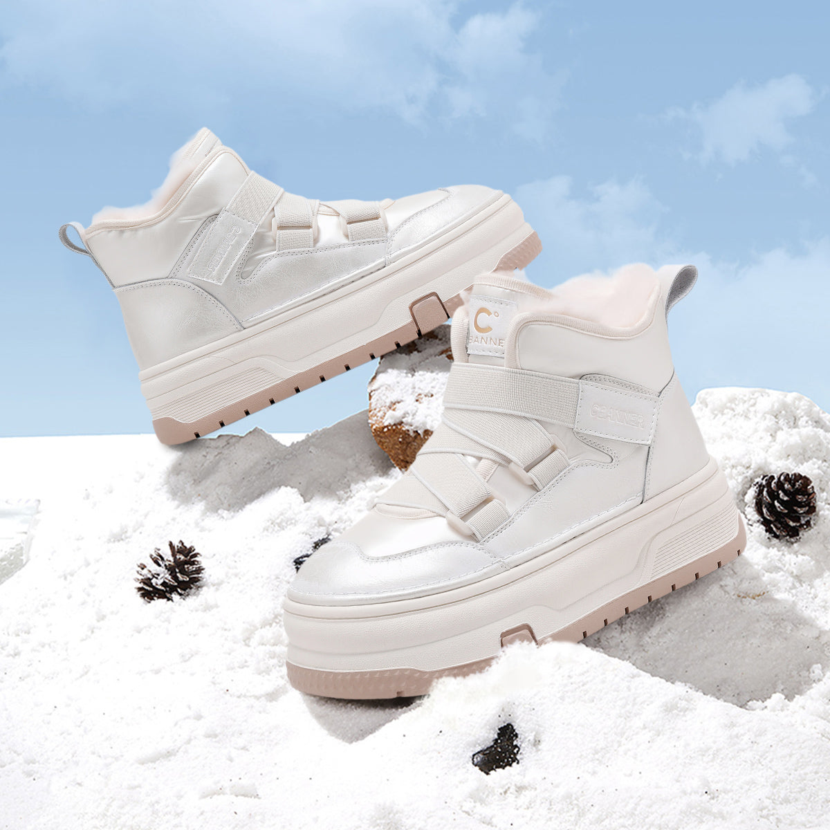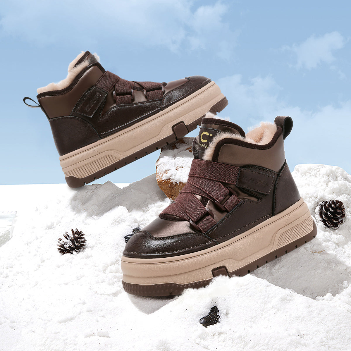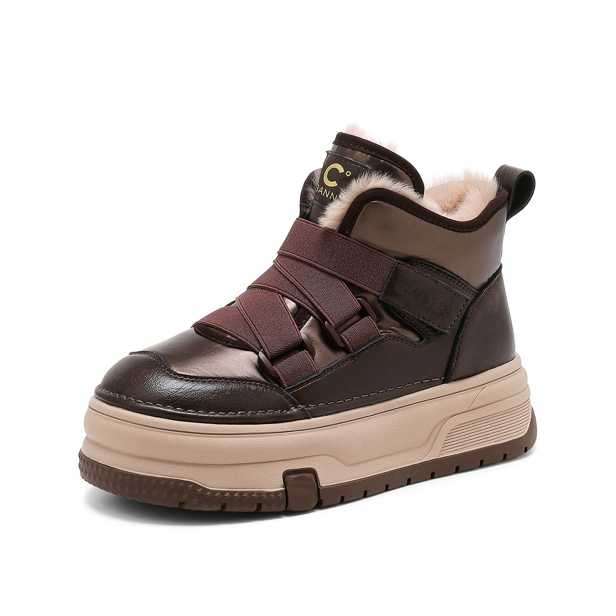 Женские короткие ботинки C.BANNER с круглым носком, тёплой подкладкой из искусственного меха и застёжкой на липучку. Модель с плотной подошвой и низким каблуком (<3 см) обеспечивает тепло, комфорт, лёгкое увеличение роста и подходит для повседневной носки осенью и зимой.