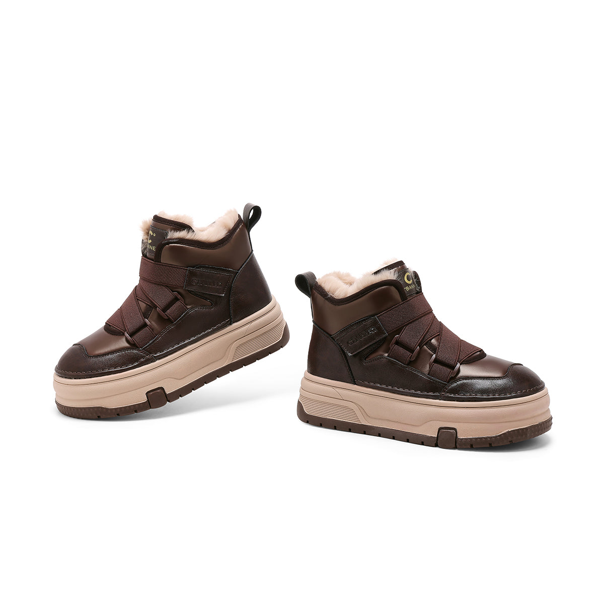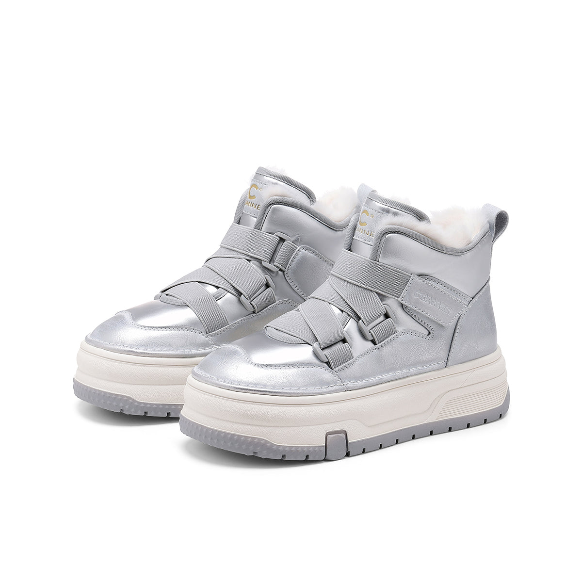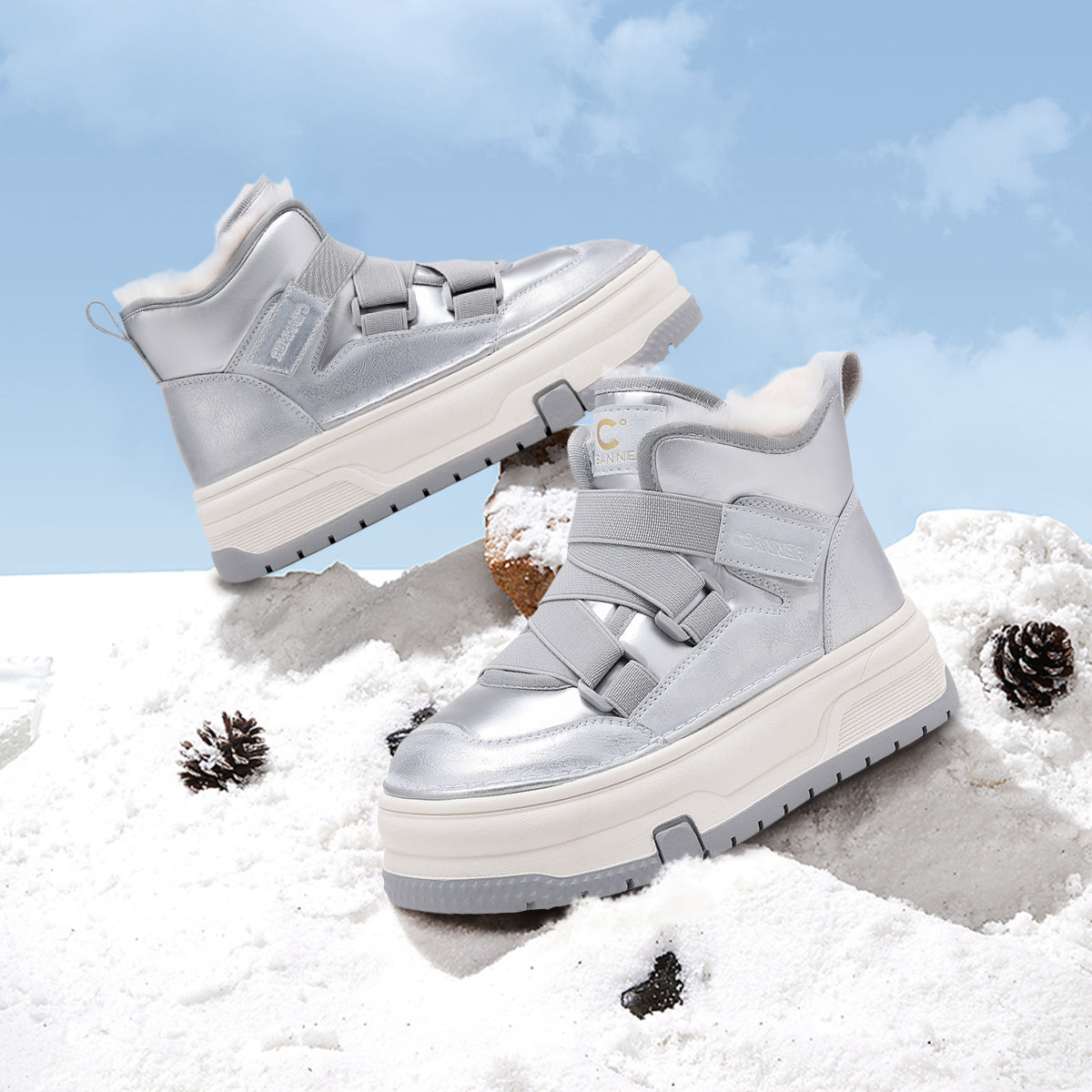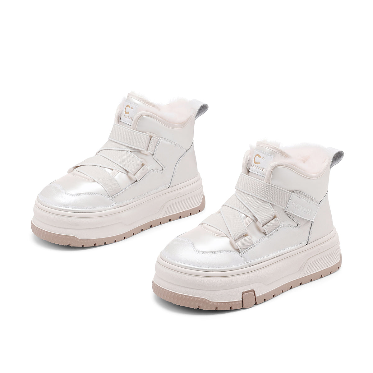 Женские короткие ботинки C.BANNER с круглым носком, тёплой подкладкой из искусственного меха и застёжкой на липучку. Модель с плотной подошвой и низким каблуком (<3 см) обеспечивает тепло, комфорт, лёгкое увеличение роста и подходит для повседневной носки осенью и зимой.