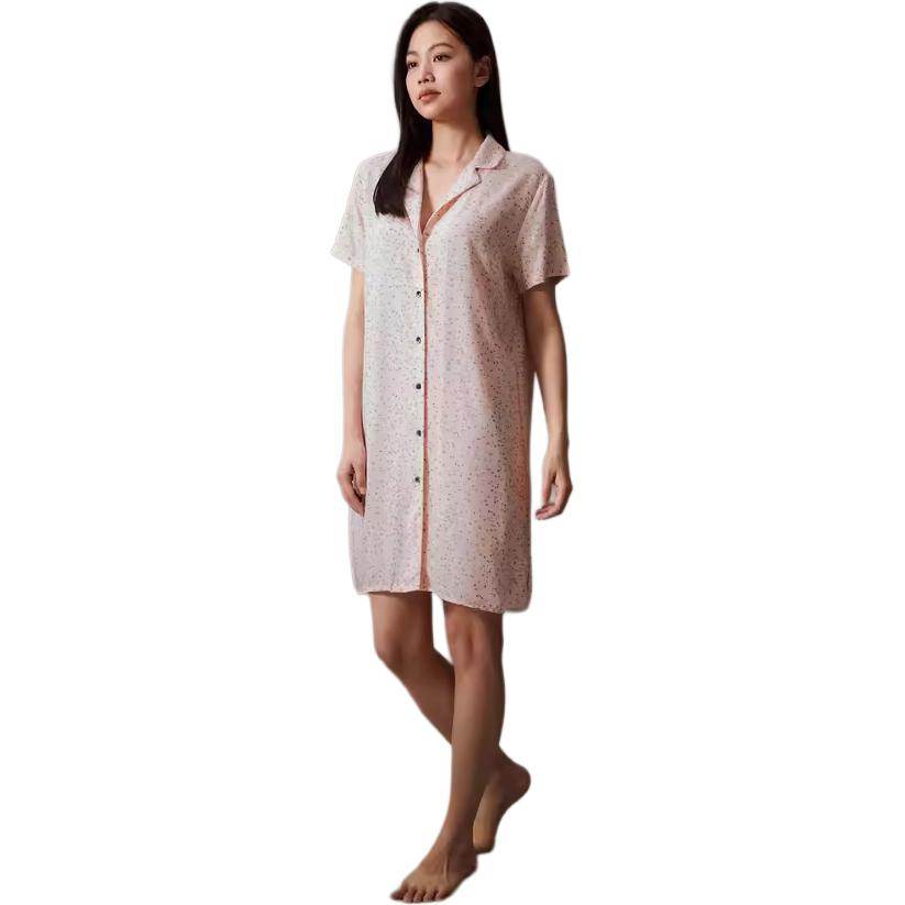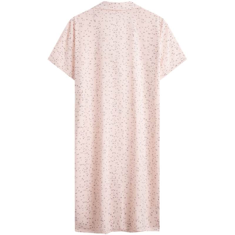 Повседневная однобортная ночная рубашка с лацканами и короткими рукавами, выполненная в розовом цвете. Удобная и стильная, идеально подходит для комфортного сна и расслабления.