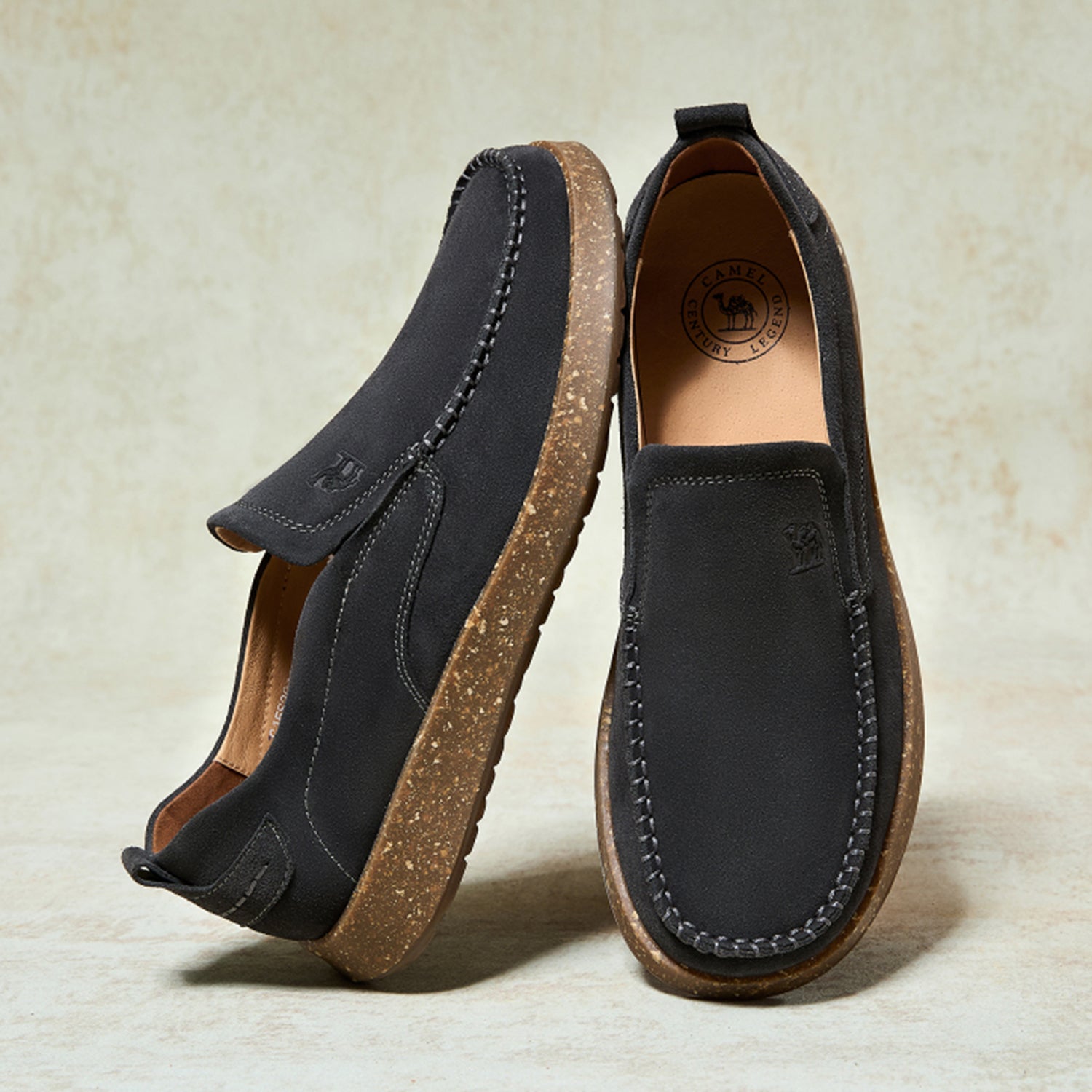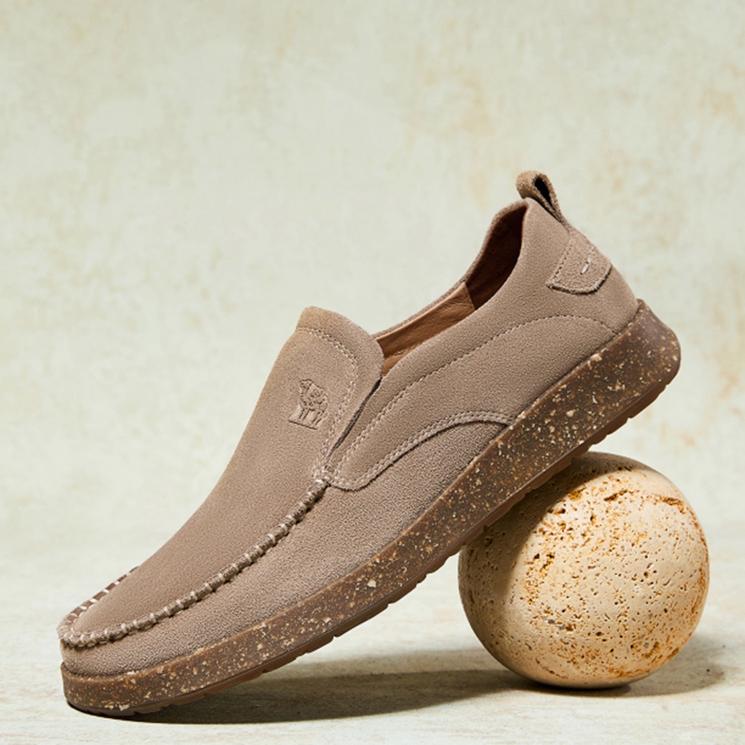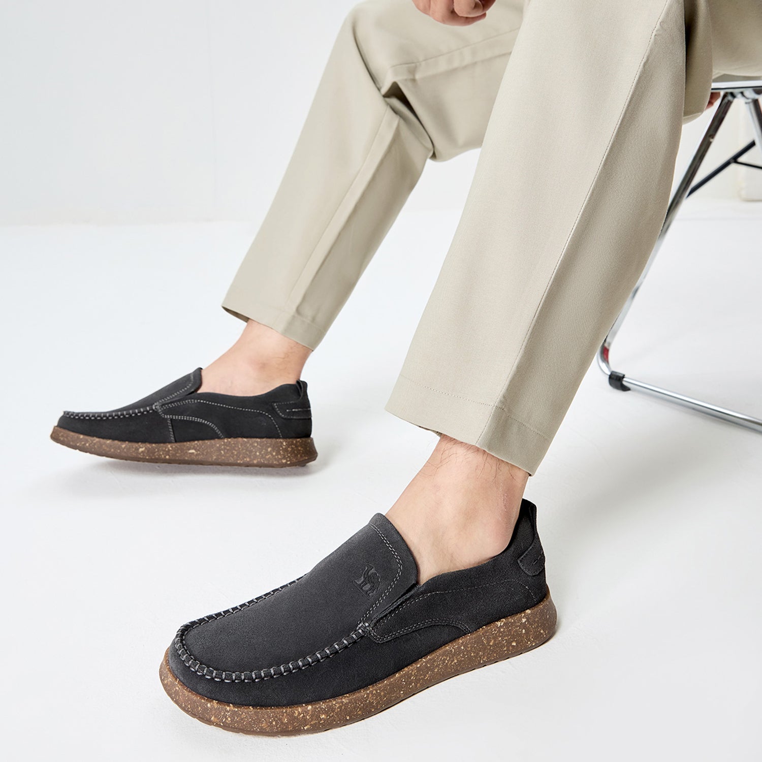 Мужские лоферы в ретро-стиле из замши с удобной конструкцией слип-он и круглым мысом. Классическая модель на плоской резиновой подошве для создания элегантного повседневного образа.