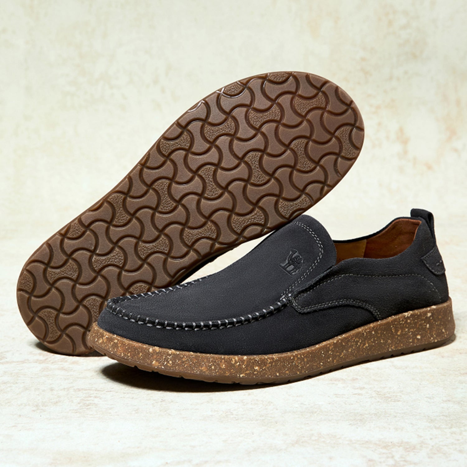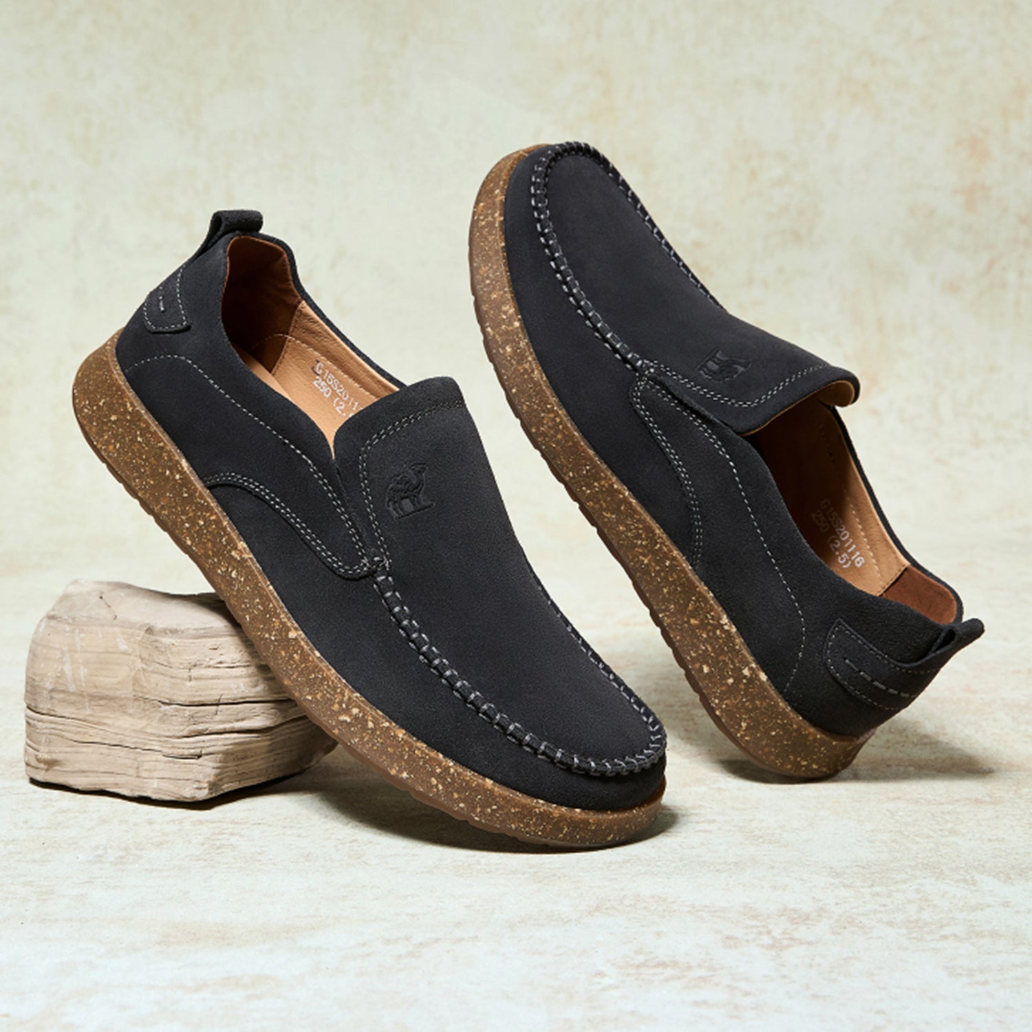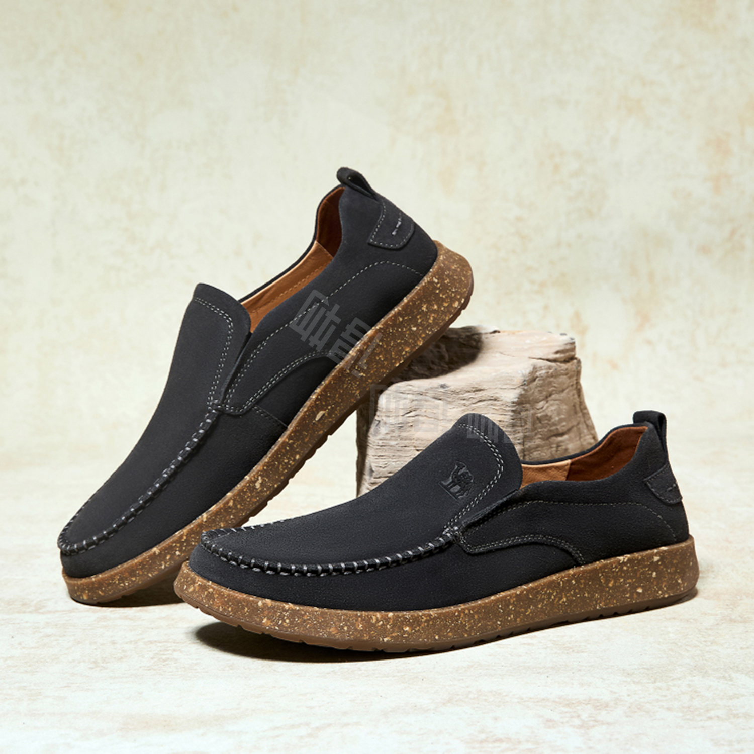 Мужские лоферы в ретро-стиле из замши с удобной конструкцией слип-он и круглым мысом. Классическая модель на плоской резиновой подошве для создания элегантного повседневного образа.