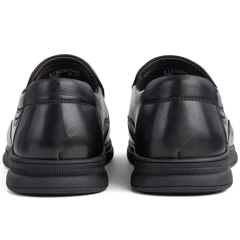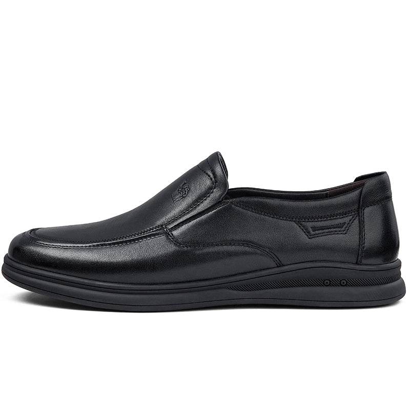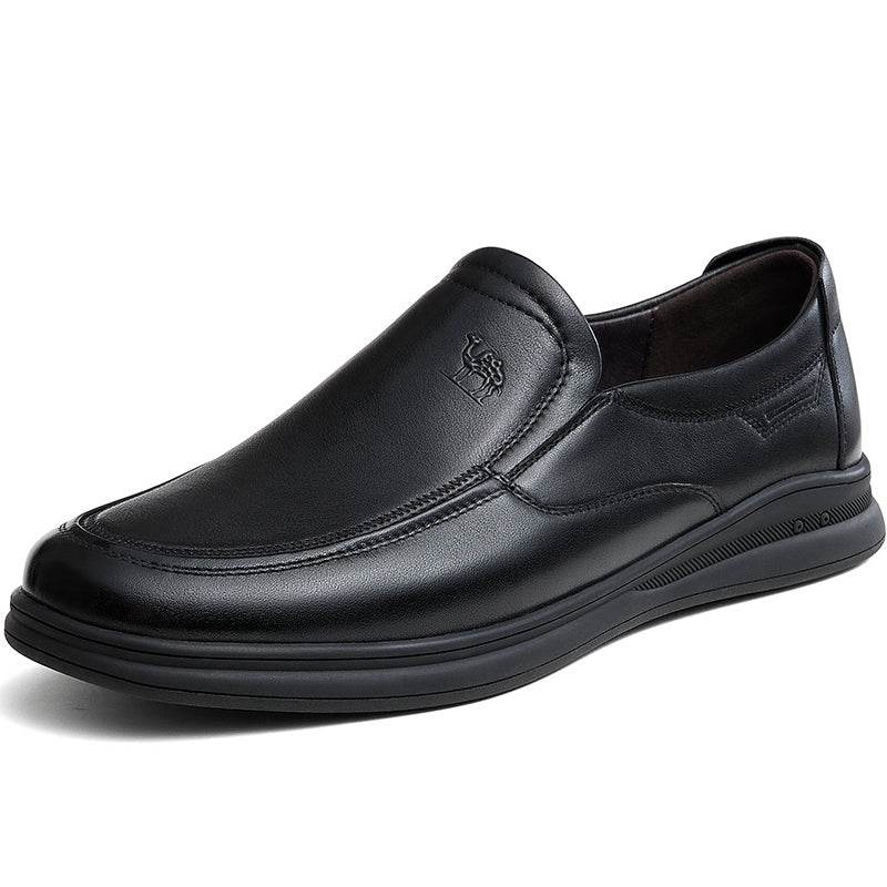 Повседневная деловая обувь черного цвета, выполненная из головного слоя воловьей кожи с мягкой подошвой. Эта износостойкая и нескользящая модель обеспечивает комфорт при длительной носке и идеально подходит для повседневной и деловой одежды.
