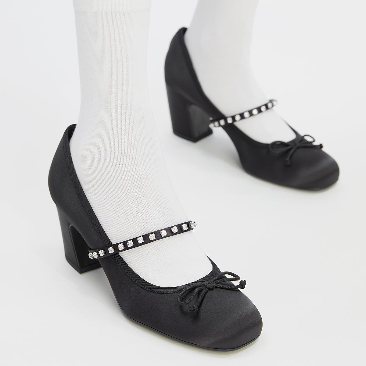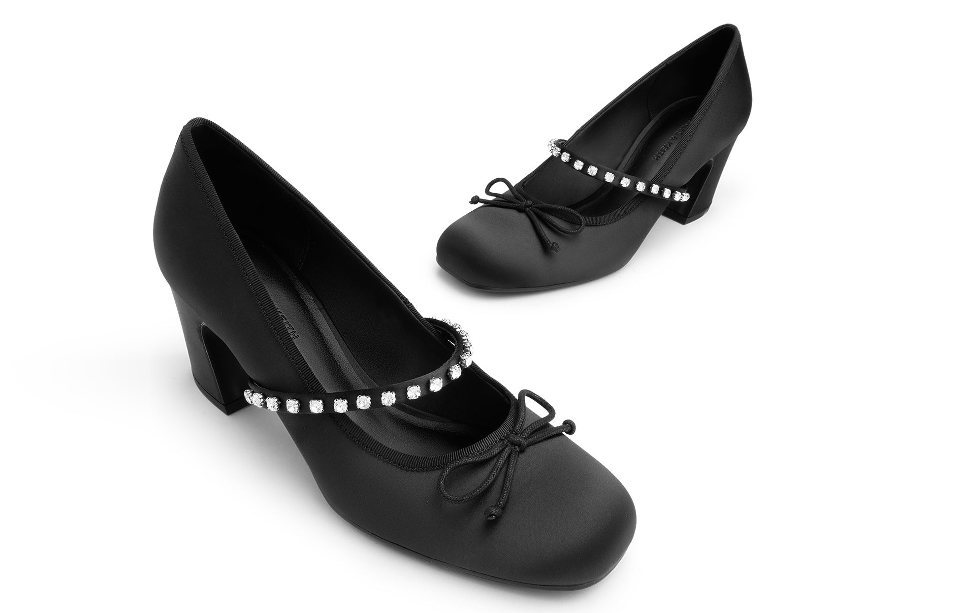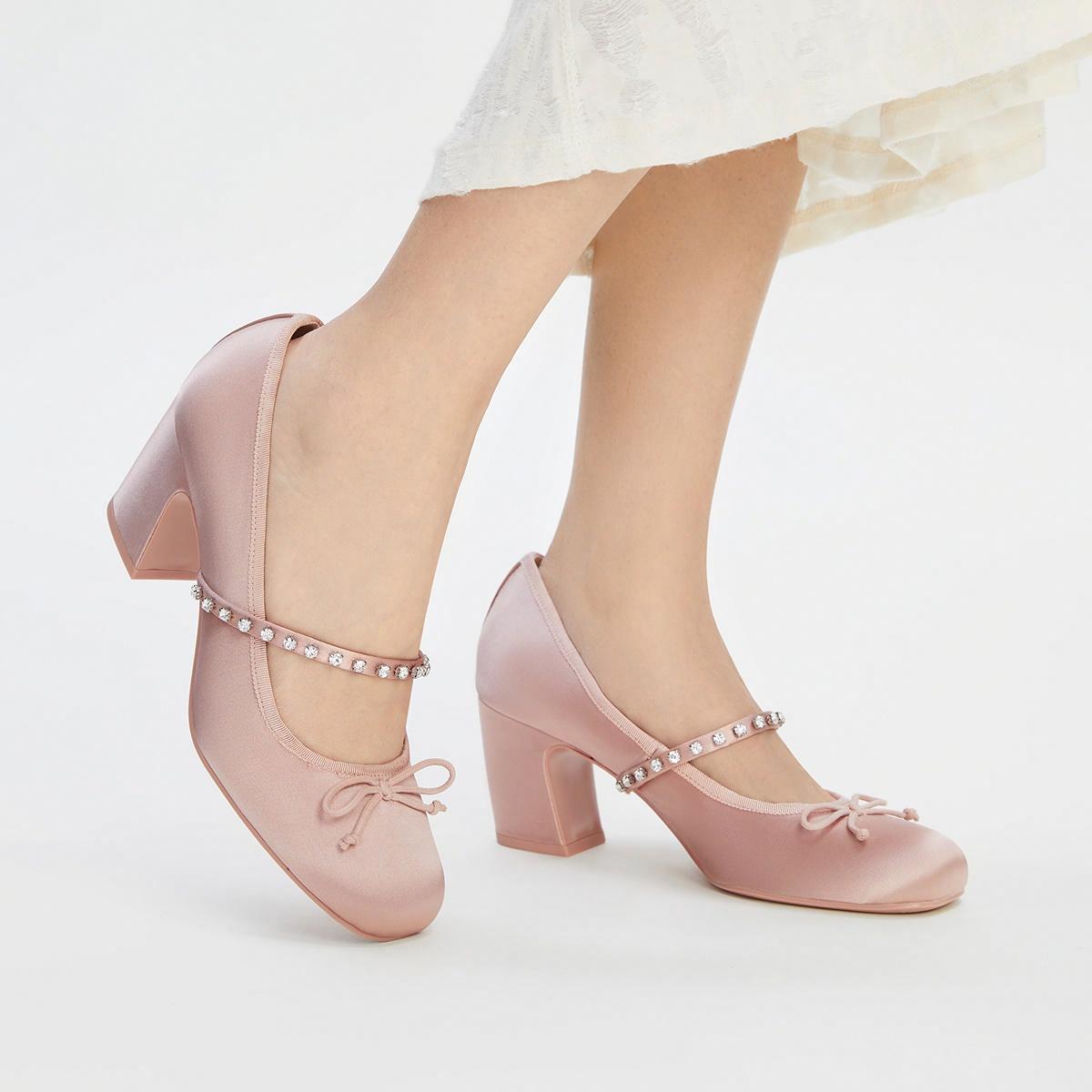 Туфли Mary Jane от Charles & Keith "Xiao CK Bow" с одним ремешком, выполненные из новых китайских тканей с блестящими алмазами. Эти удобные туфли на chunky каблуке высотой 6.6 см доступны в нюдовом, светло-сером и текстурированном черном цветах, добавляя стильный акцент и элегантность в любой образ.