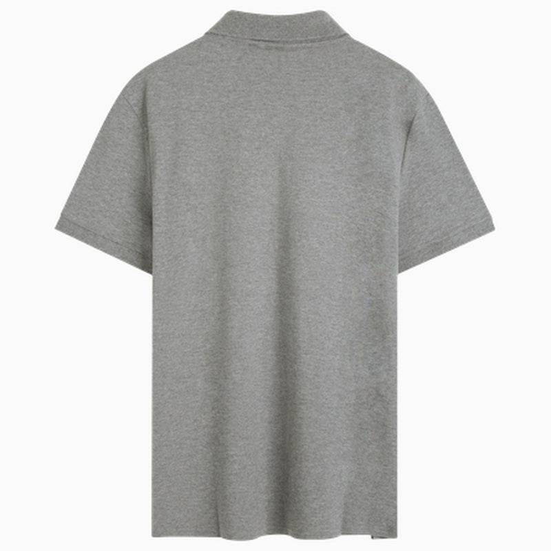 Однотонная рубашка-поло с короткими рукавами серого цвета, украшенная вышитым квадратным логотипом. Удобный и стильный элемент гардероба, идеально подходит для повседневной носки и создания элегантного образа.