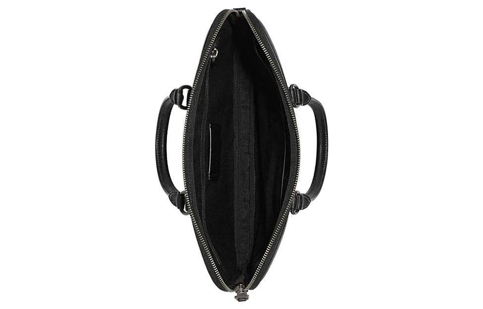 Сумка Coach с классическим цветочным логотипом и застежкой на молнии, выполненная из PVC. Этот портфель в черном цвете идеально подходит для повседневного использования и делового стиля.