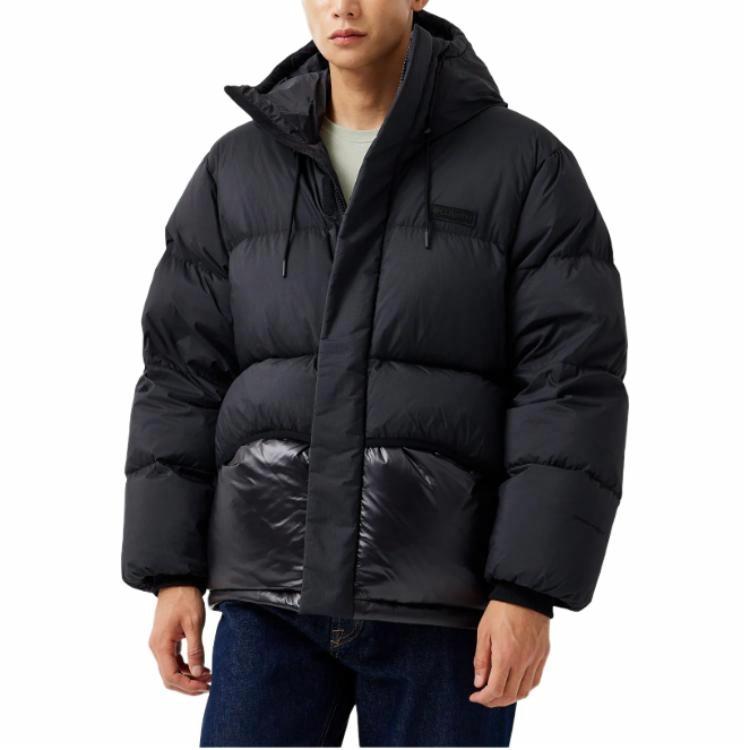 Columbia columbia сплошной цвет логотип вышивка стринги капюшон застежка-молния с длинным рукавом вниз куртка мужская черный