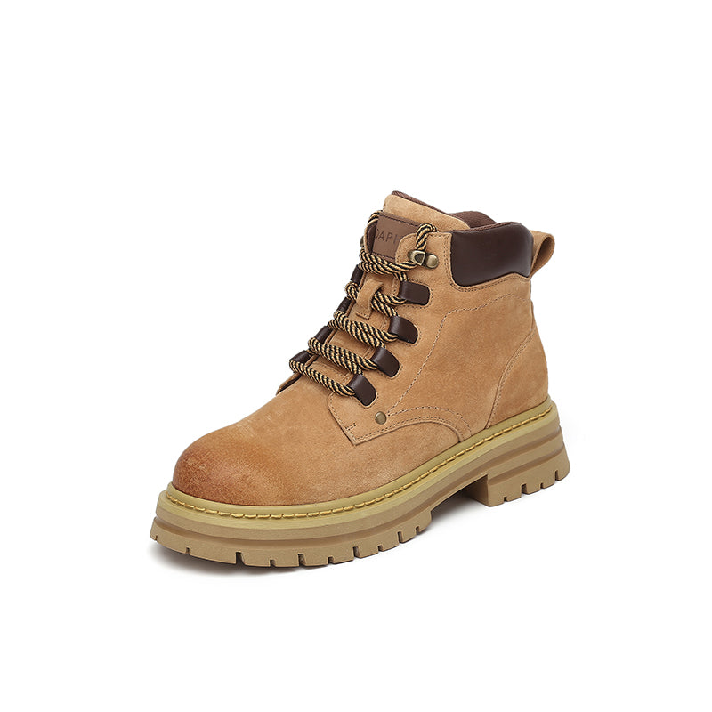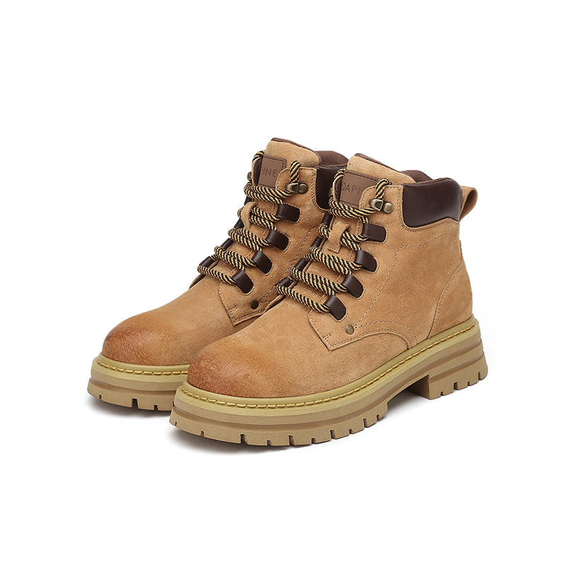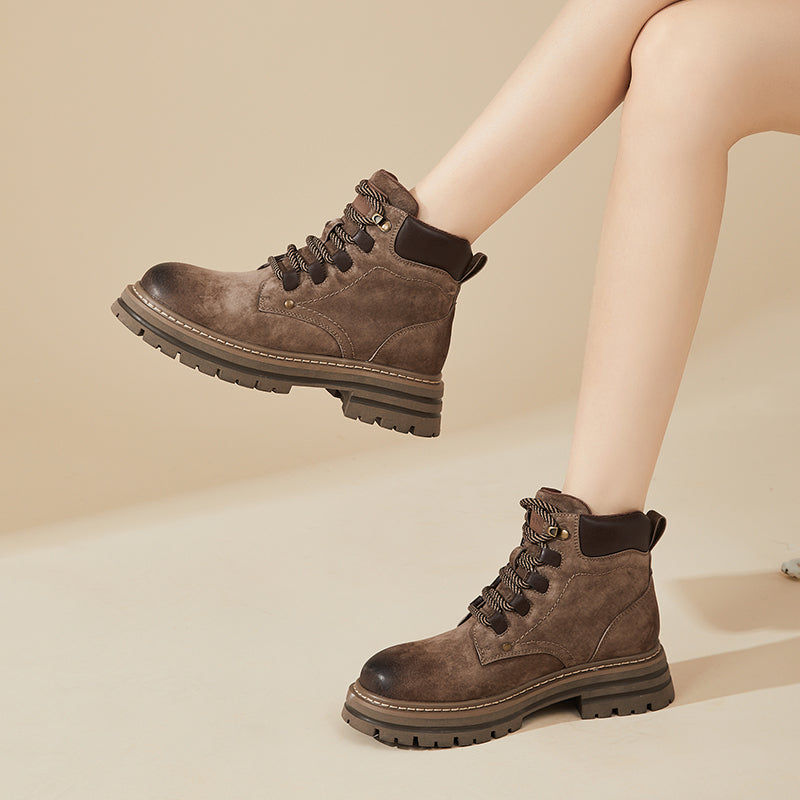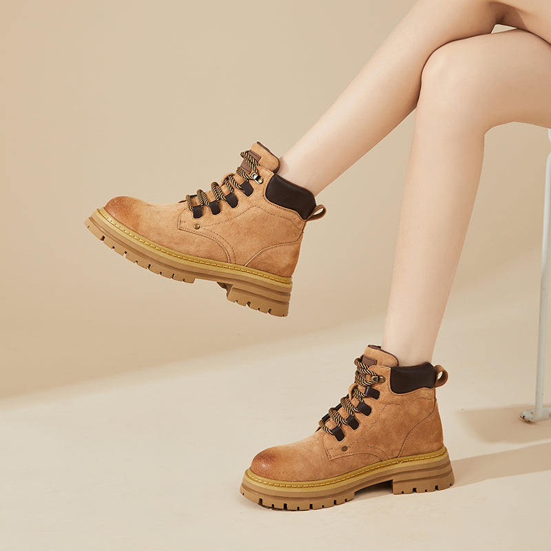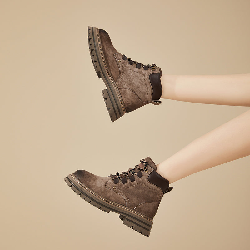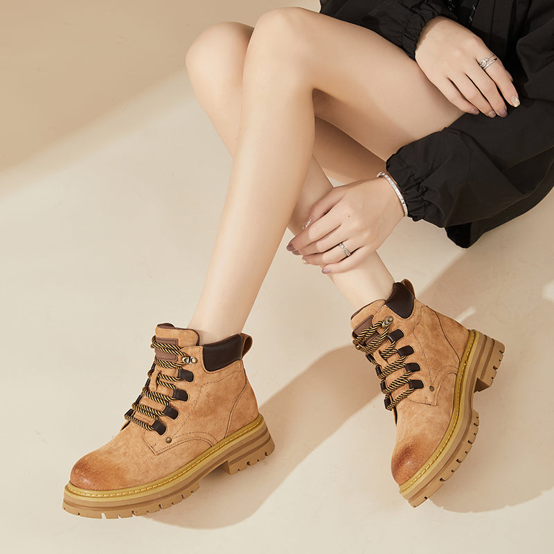 Женские короткие ботинки DAPHNE из натуральной кожи свиной выделки в английском стиле. Модель с круглым носком, шнуровкой и устойчивым толстым каблуком обеспечивает комфорт, защиту от скольжения и стильный внешний вид для осени и зимы.