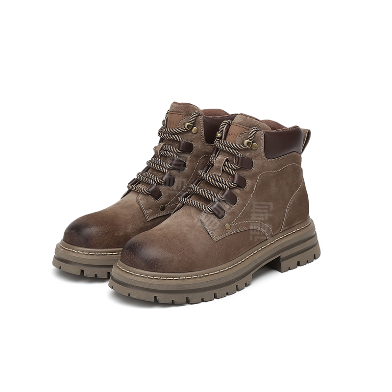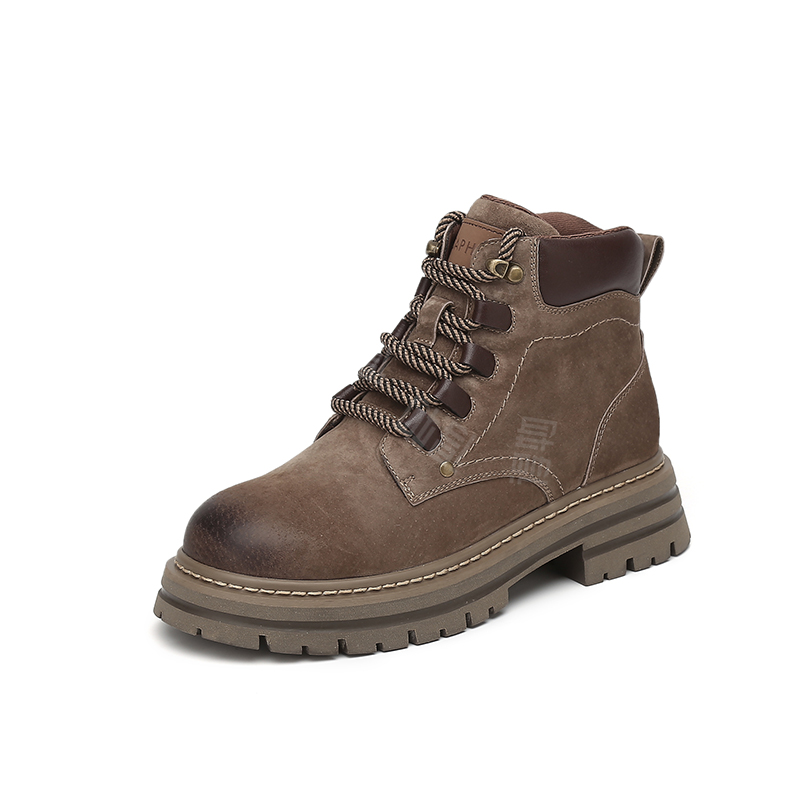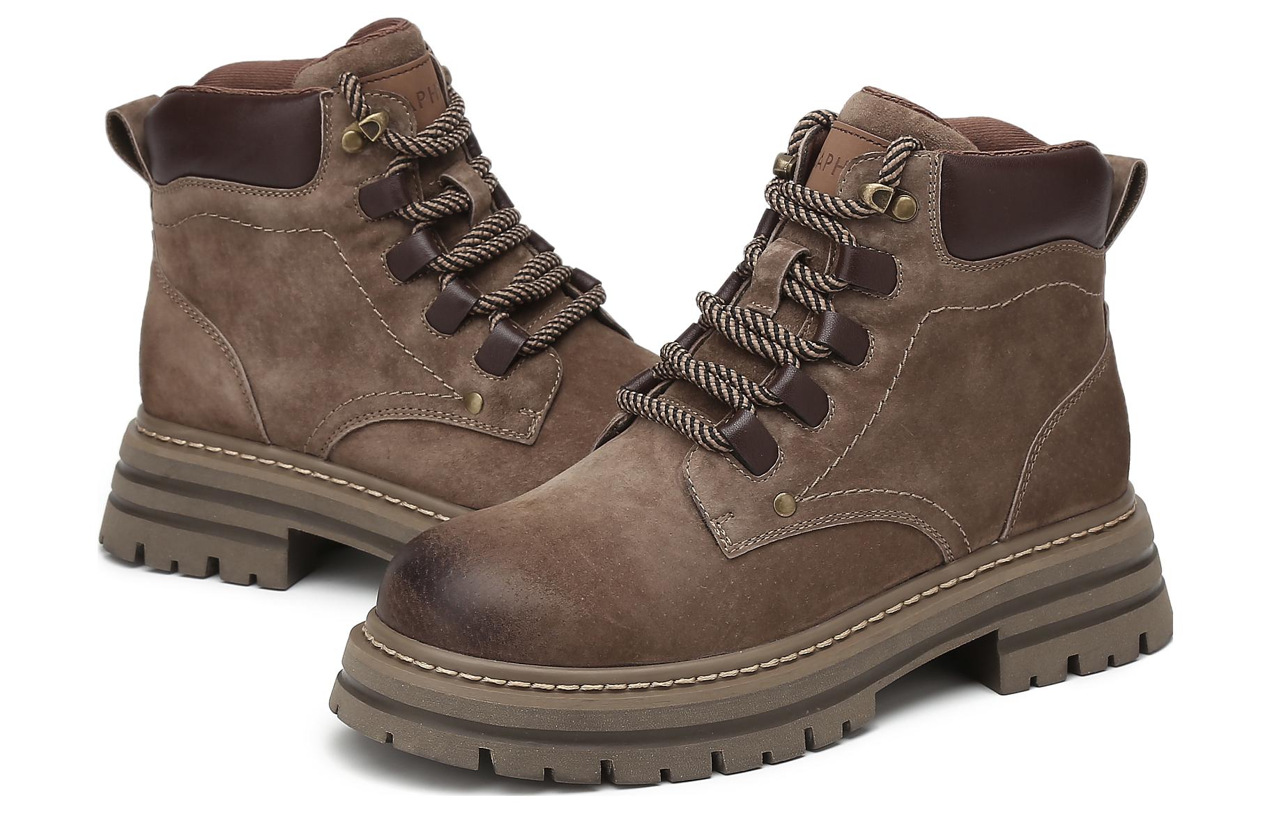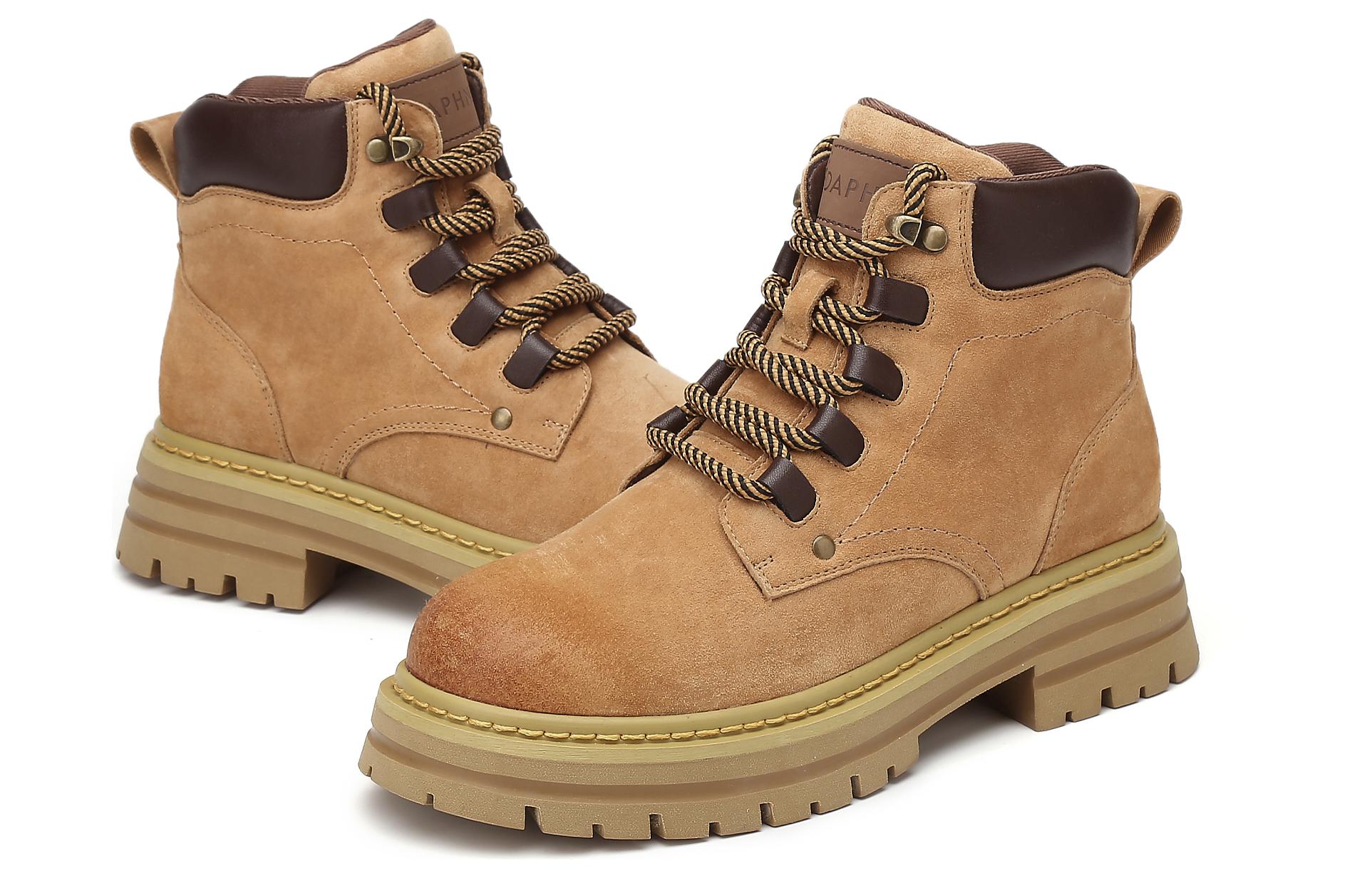 Женские короткие ботинки DAPHNE из натуральной кожи свиной выделки в английском стиле. Модель с круглым носком, шнуровкой и устойчивым толстым каблуком обеспечивает комфорт, защиту от скольжения и стильный внешний вид для осени и зимы.