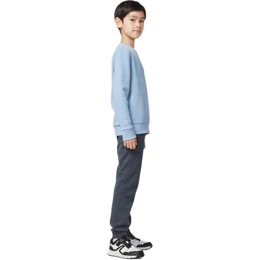 Детский свитшот из флиса с круглым вырезом, выполненный в джинсово-голубом оттенке. Модель обеспечивает тепло и комфорт для активного отдыха в прохладную погоду.