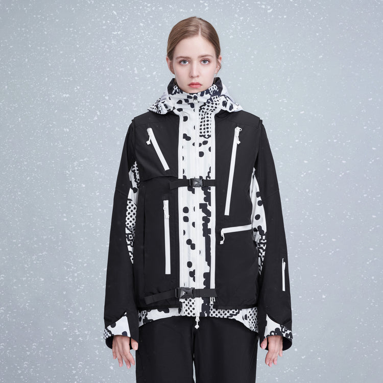 Универсальная горнолыжная куртка Descente x Kazuki с капюшоном и молнией, водонепроницаемая, дышащая и тёплая, подходит для мужчин и женщин для катания на сноуборде и активного зимнего отдыха.