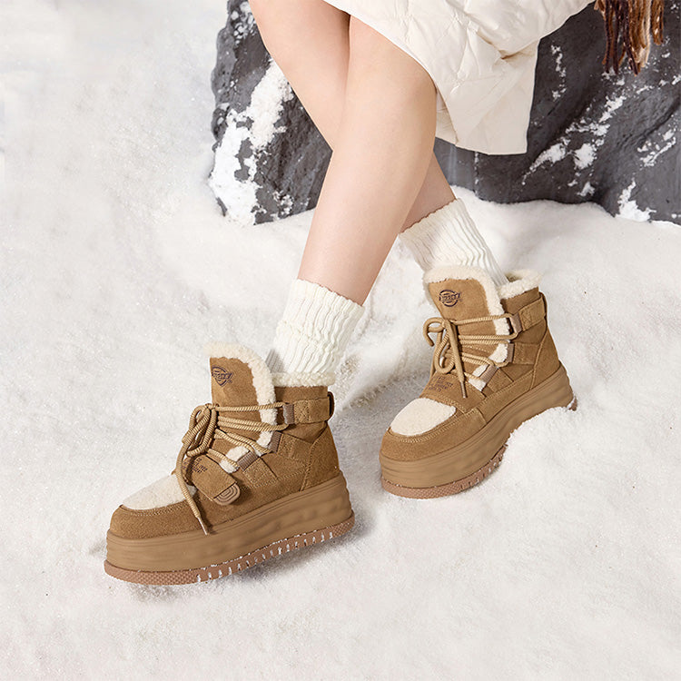 Теплые ботинки Dickies с плюшевой подкладкой, круглым носком и шнуровкой. Модель сочетает в себе стильный английский дизайн, толстую подошву и функции: тепло, износостойкость, антискольжение и легкое увеличение роста.