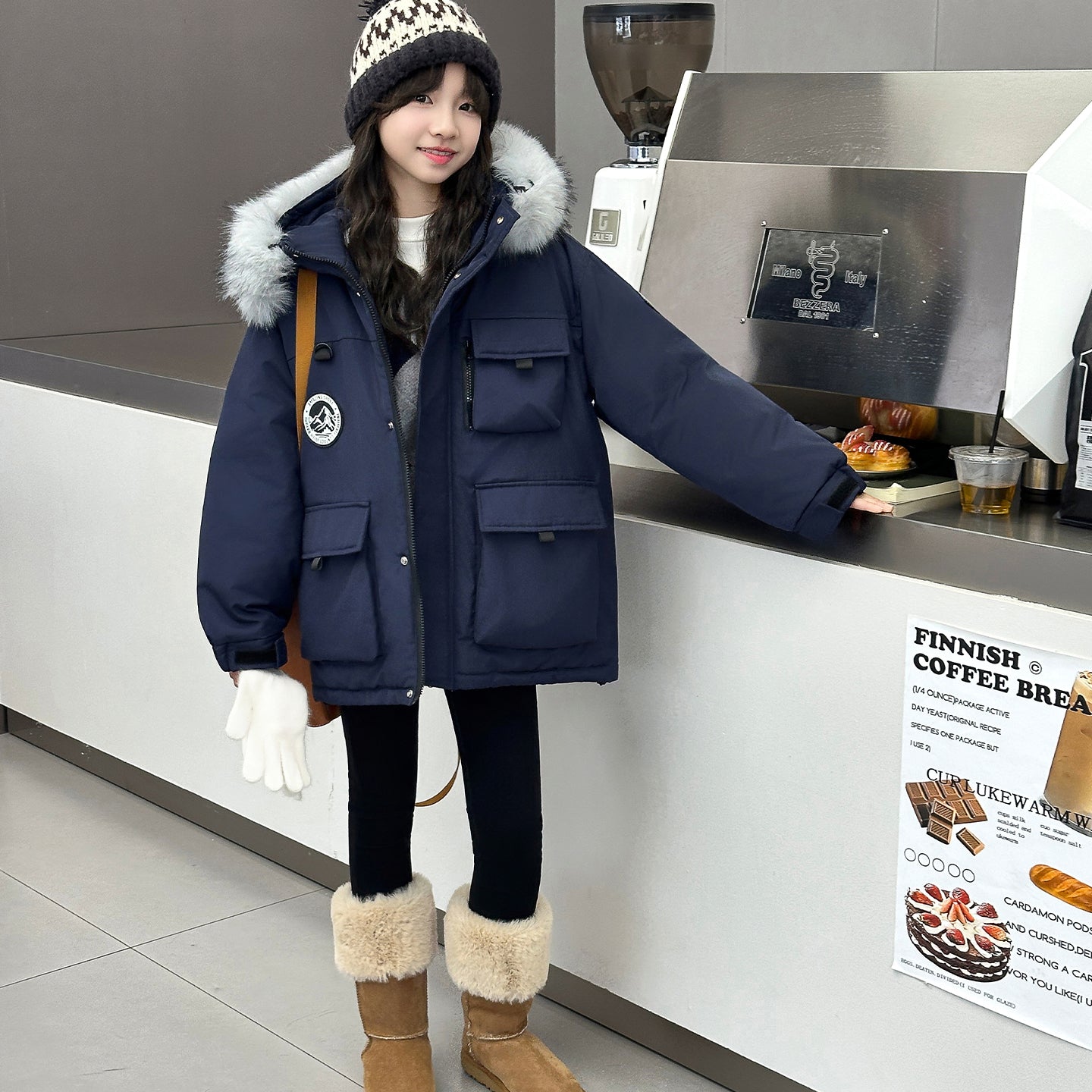 Состав: верхняя ткань — полиэстер, утеплитель — белый утиный пух (содержание пушинок 85%).