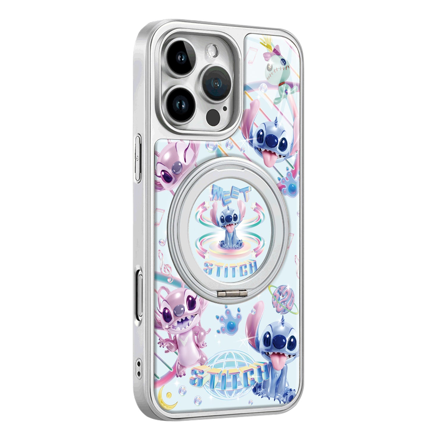 Прочный чехол для iPhone из ABS + PC с креативным дизайном Stitch в стиле прилива и премиальным узором под углеродное волокно. Оснащён 360° вращающимся держателем, обеспечивает надёжную защиту телефона и стильный внешний вид.