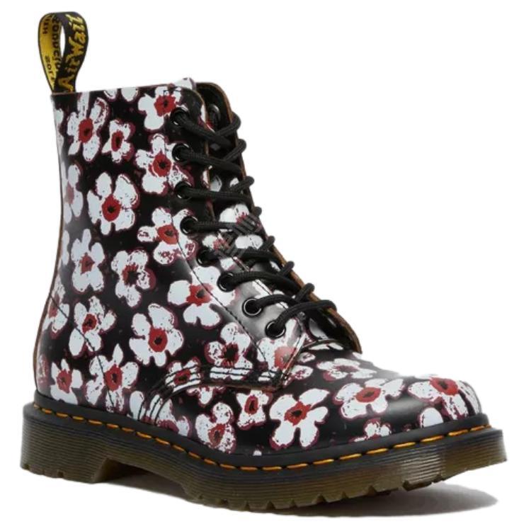Женские средние ботинки Dr. Martens 1460 Pascal с круглым носком и шнуровкой. Модель из прочного материала с низким каблуком (<3 см) и устойчивой подошвой обеспечивает комфорт, амортизацию, износостойкость и стильный английский образ для весны, осени и зимы.
