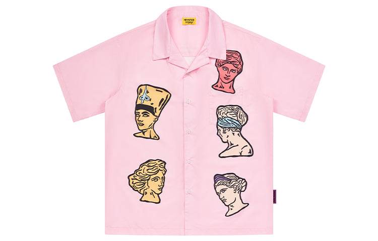 Рубашка выполнена в американском винтажном стиле с короткими рукавами и принтом, изображающим римские статуи с ручной росписью. Модель в розовом цвете подходит как для мужчин, так и для женщин, придавая оригинальный и художественный акцент вашему повседневному образу.
