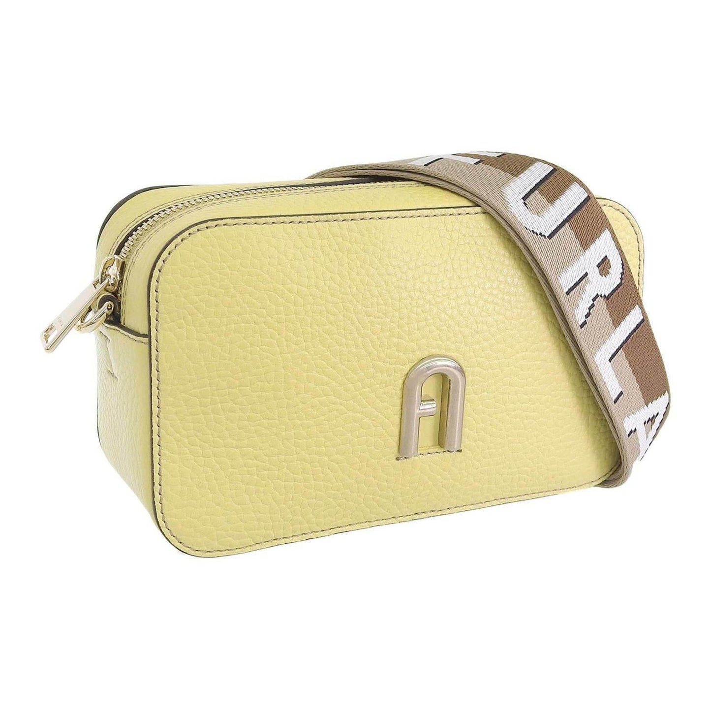 Кожаная сумка ярко-желтого цвета с металлическим логотипом и застежкой на молнии. Элегантный и стильный аксессуар, который подходит для повседневного использования и добавляет яркий акцент в любой образ.