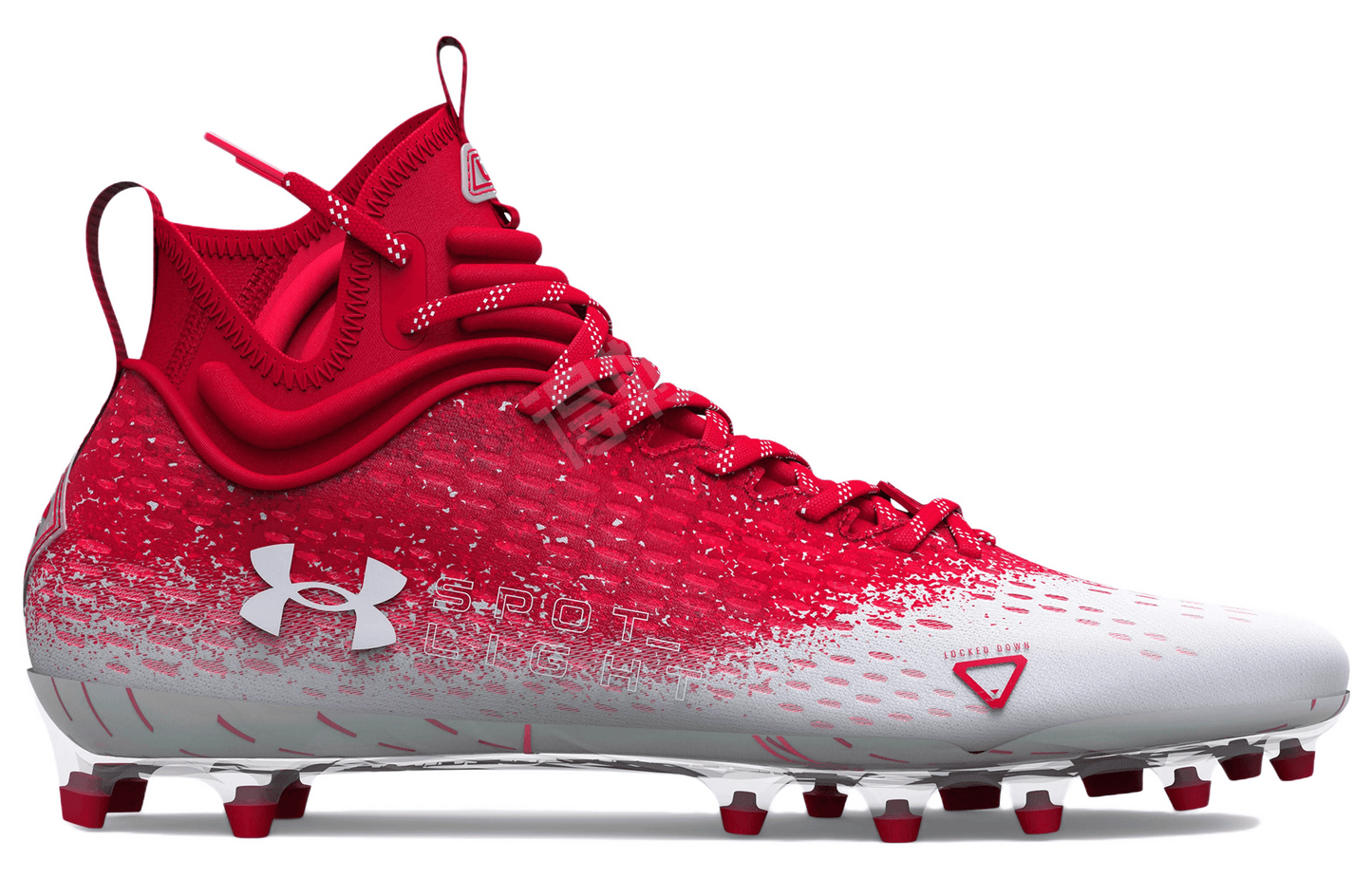Высококачественные футбольные бутсы Under Armour UA Spotlight Lux MC 2.0 с высоким верхом, выполненные в стильном сочетании красного и белого цветов. Эти бутсы обеспечивают отличную поддержку лодыжки и сцепление на поле, что позволяет игрокам легко выдерживать динамичные движения во время игры. Удобная посадка и легкий материал делают их идеальными для серьезных тренировок и матчей.