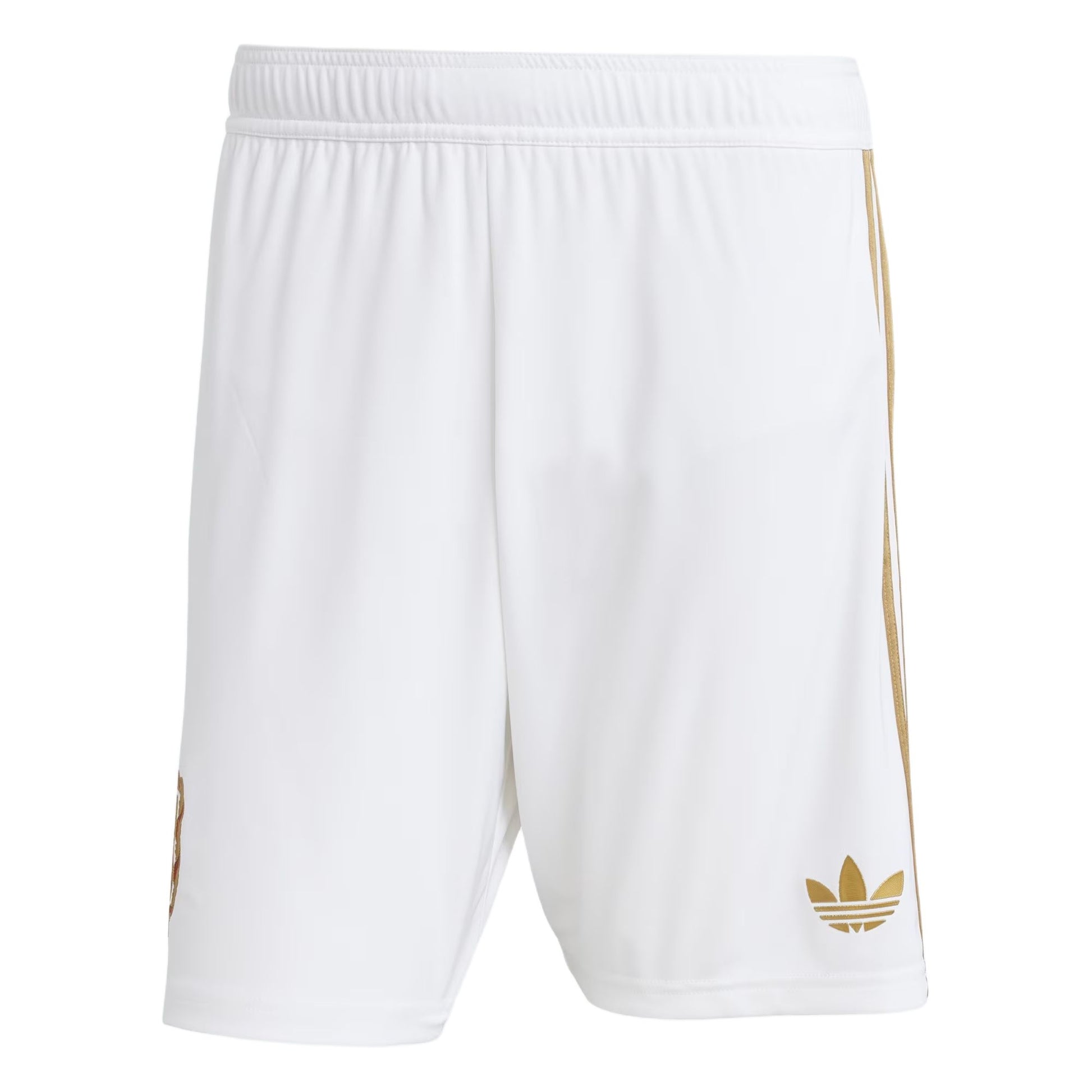 Футбольные шорты мужские Adidas Originals Anniversary FC Bayern выполнены в классическом белом цвете и украшены логотипом клуба. Эти шорты обеспечивают комфорт и функциональность благодаря влагоотводящей технологии, которая помогает поддерживать сухость во время активных занятий. Стильные полоски по бокам добавляют динамичности, а эластичный пояс обеспечивает удобную посадку. Идеально подходят для тренировок и повседневного использования. Отличный выбор для поклонников футбольного клуба Bayern Munich.