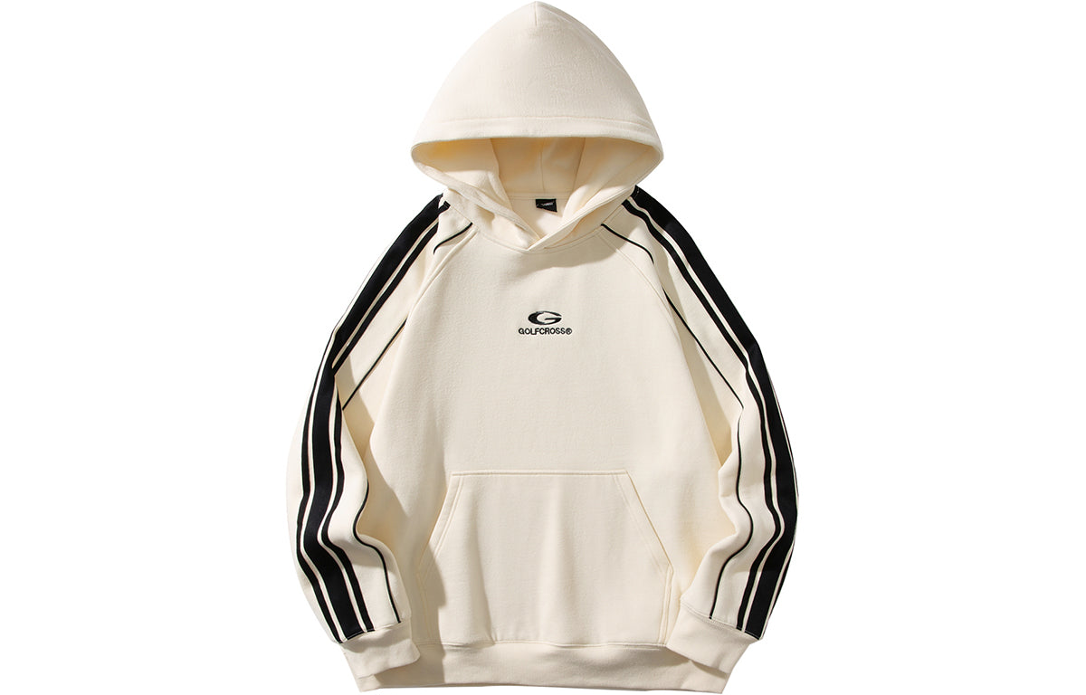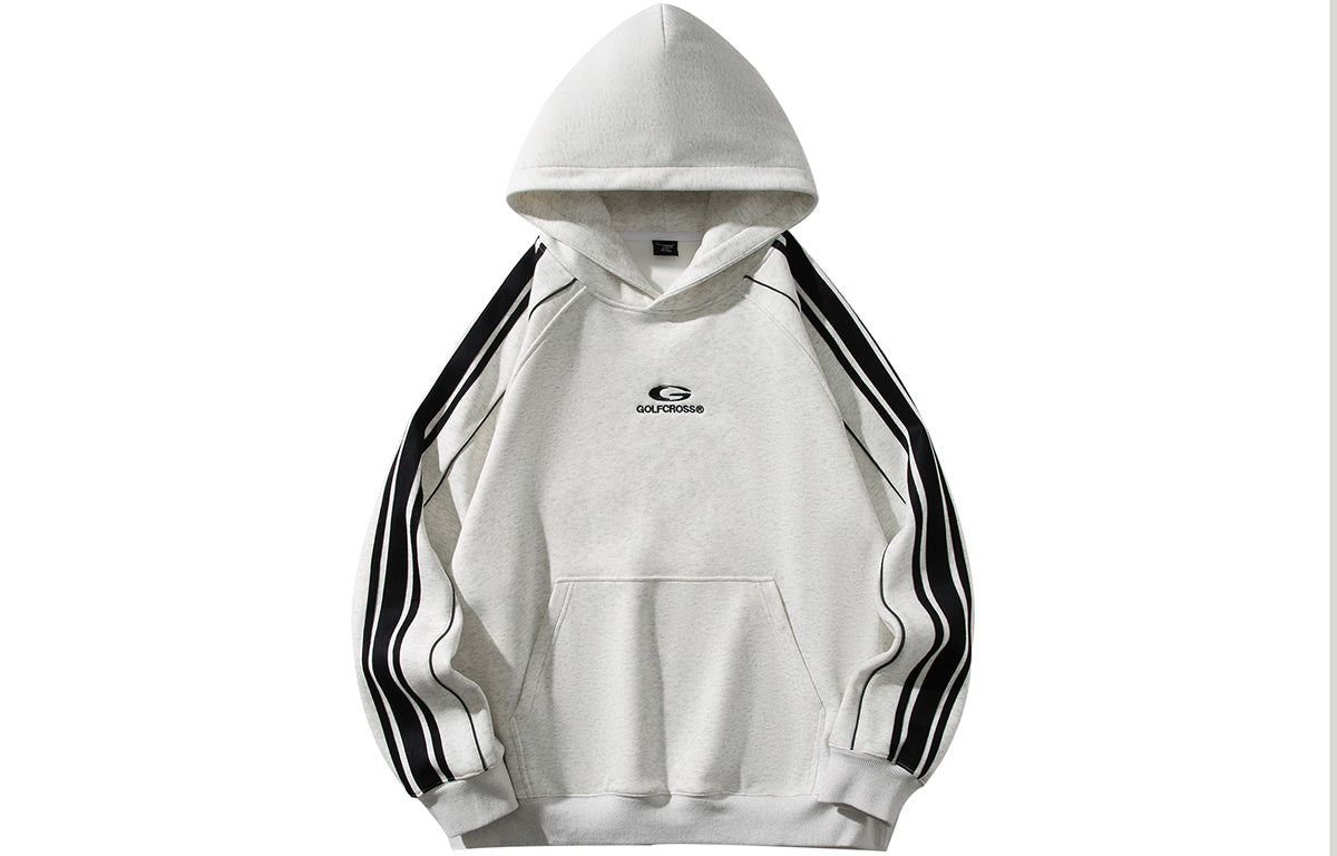 Универсальная толстовка с капюшоном в стиле американского ретро, выполненная с полосами и вышивкой букв. Идеальна для весны, осени и зимы, с комфортным широким кроем и без подкладки.