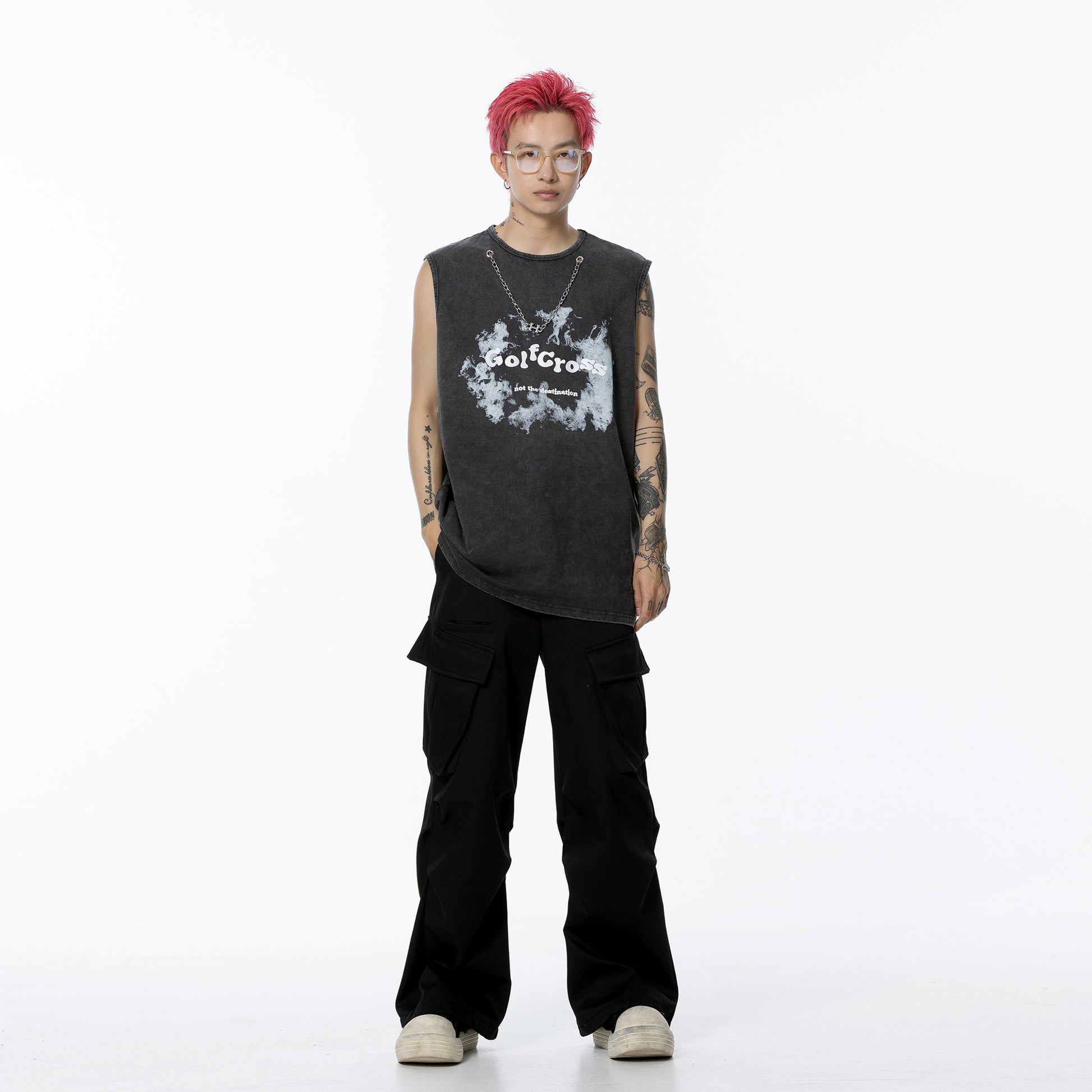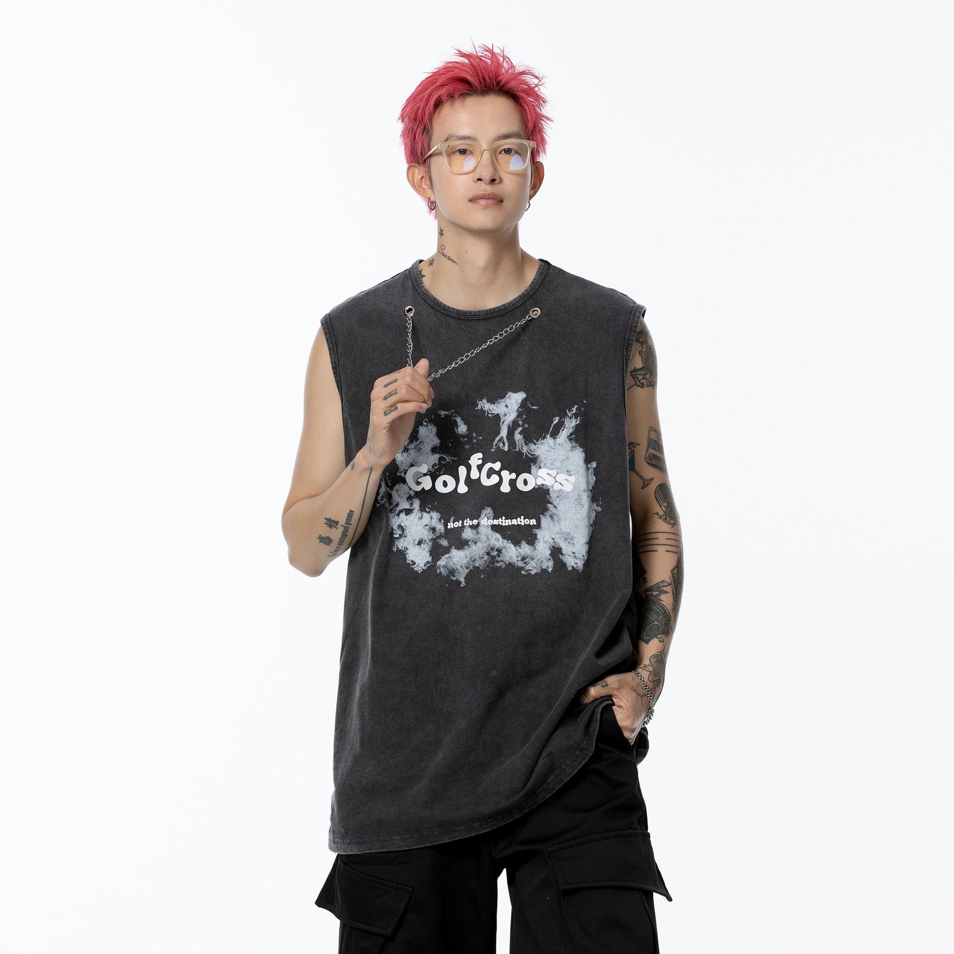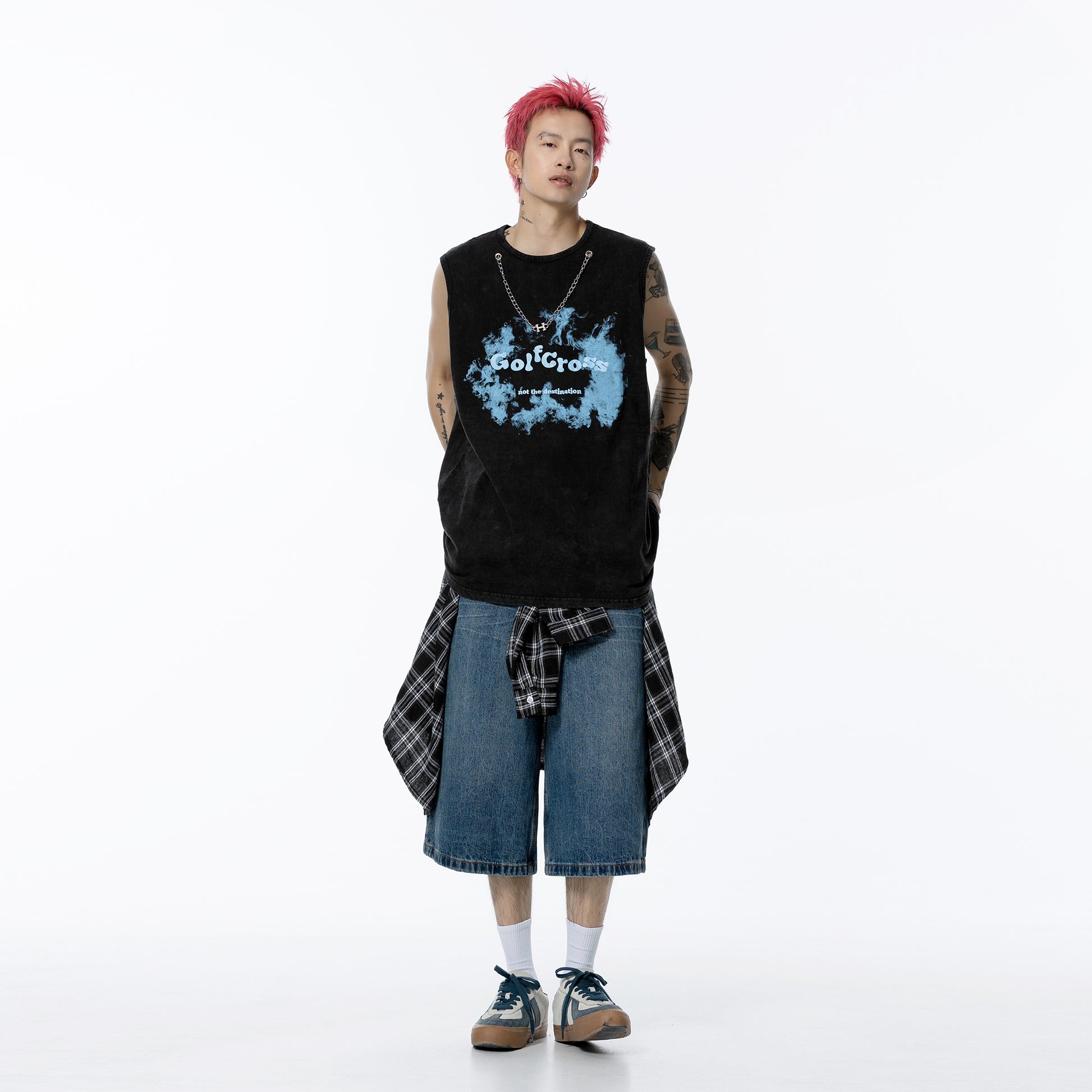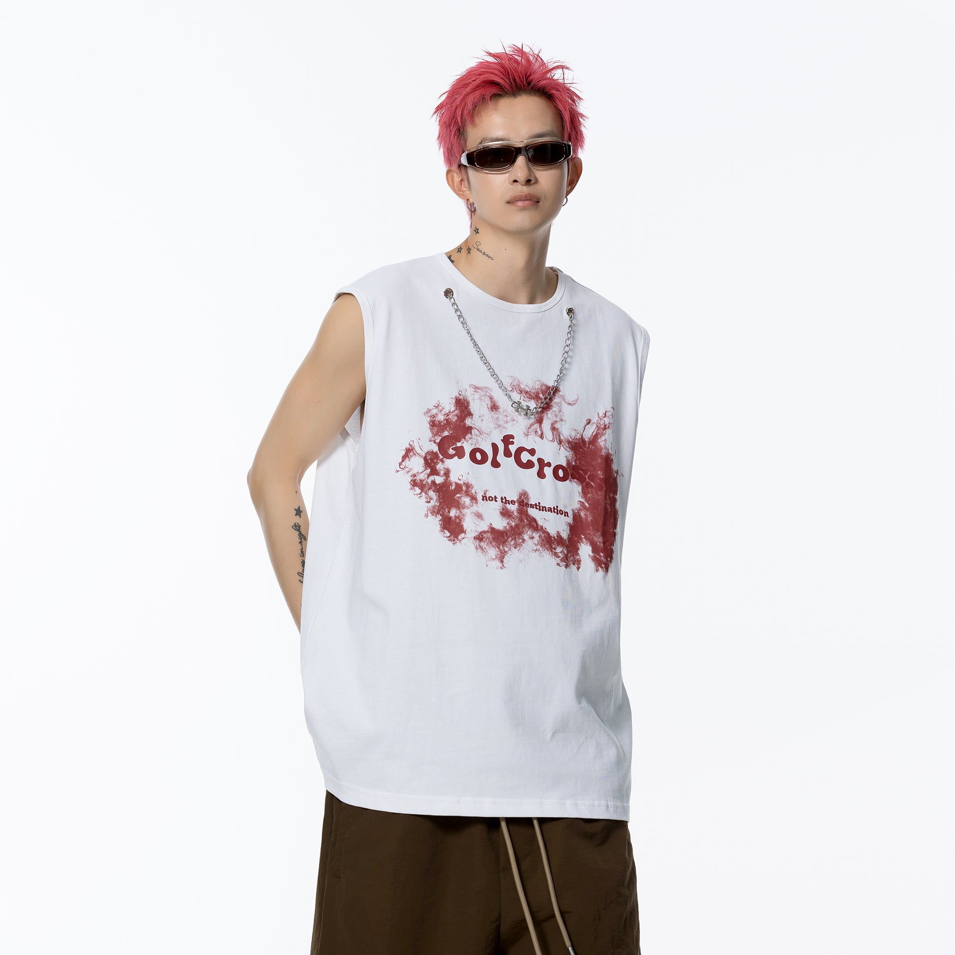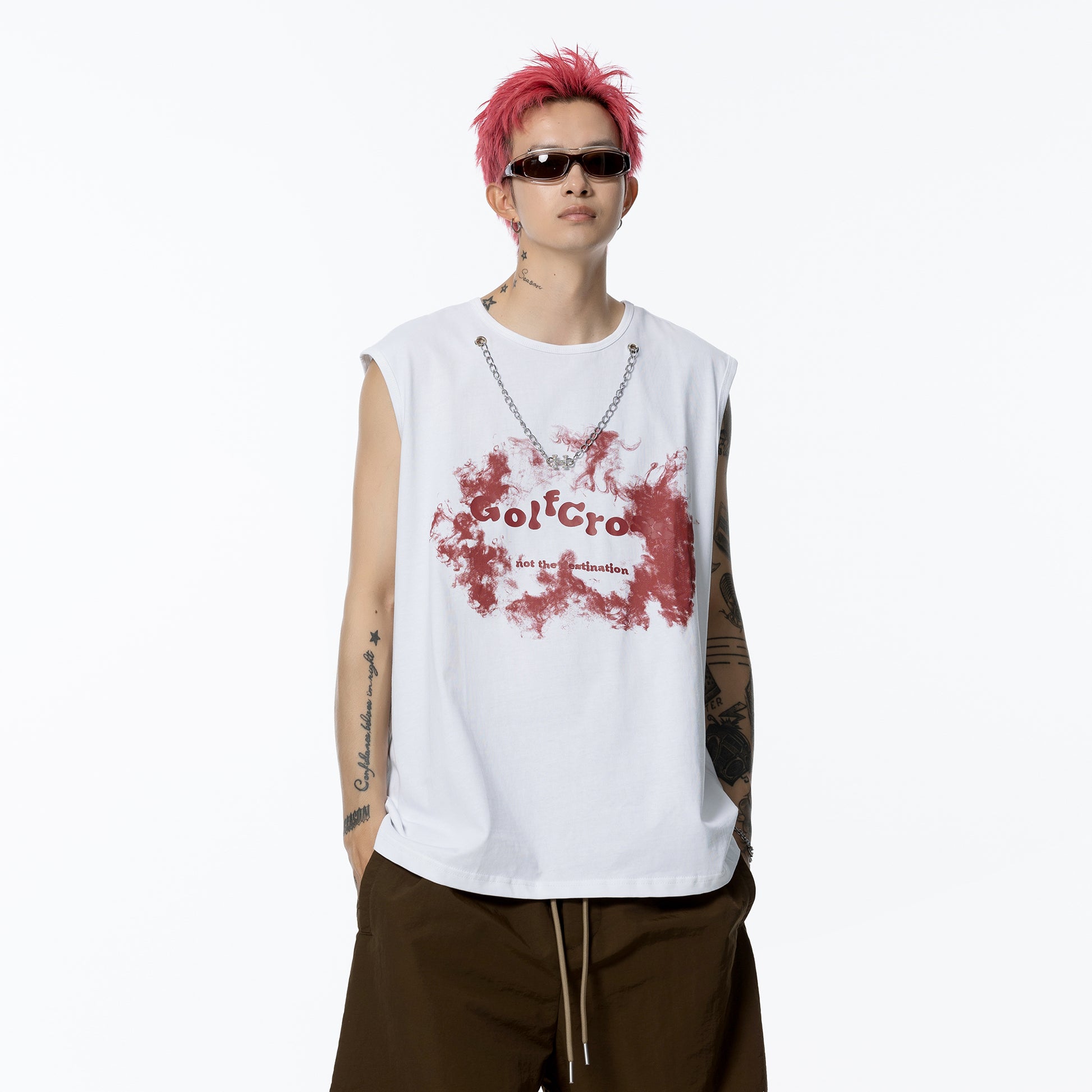 Майка с принтом букв и графическими элементами, выполненная из 100% хлопка. Идеальна для лета, свободный крой и комфортная посадка, обеспечивают отличную воздухопроницаемость.