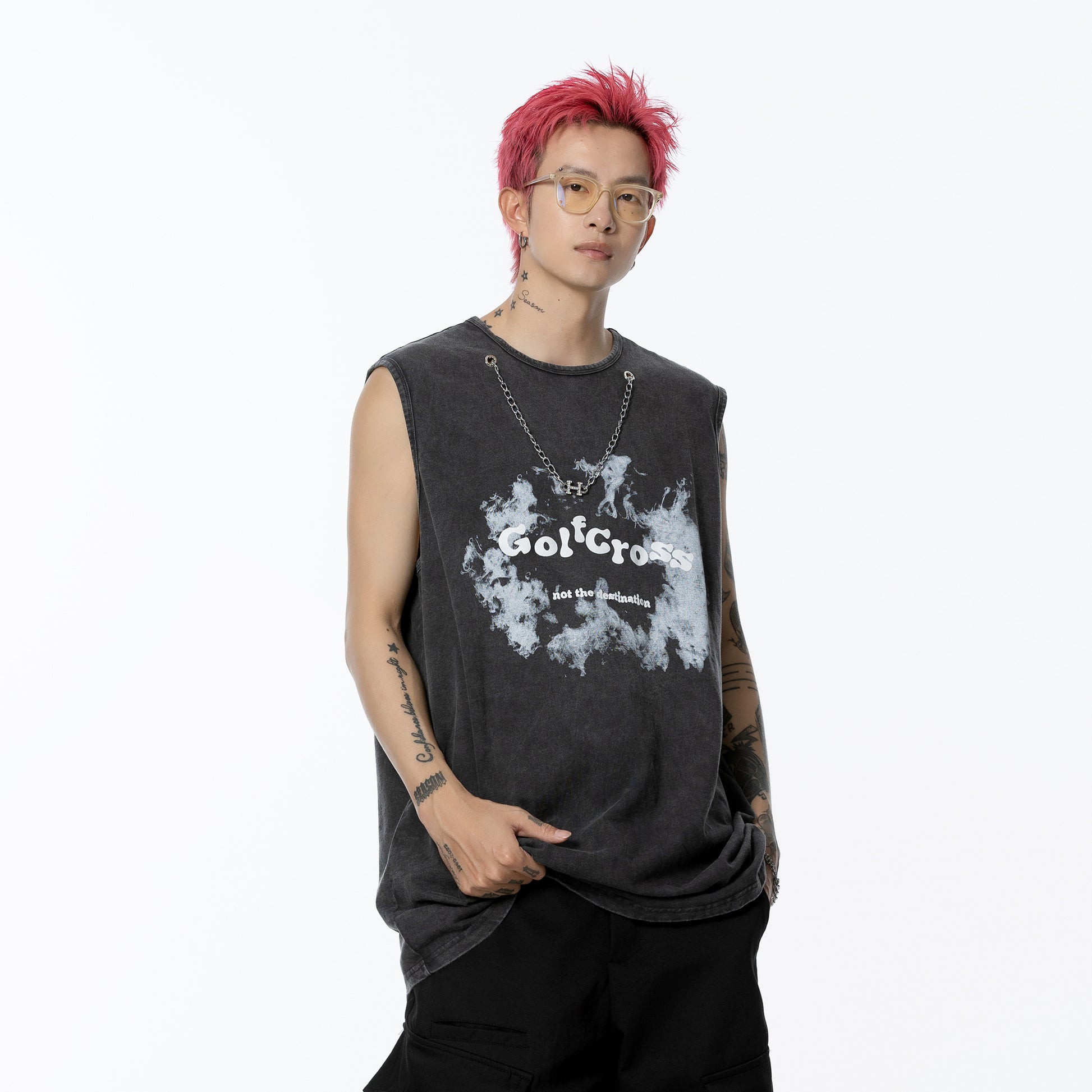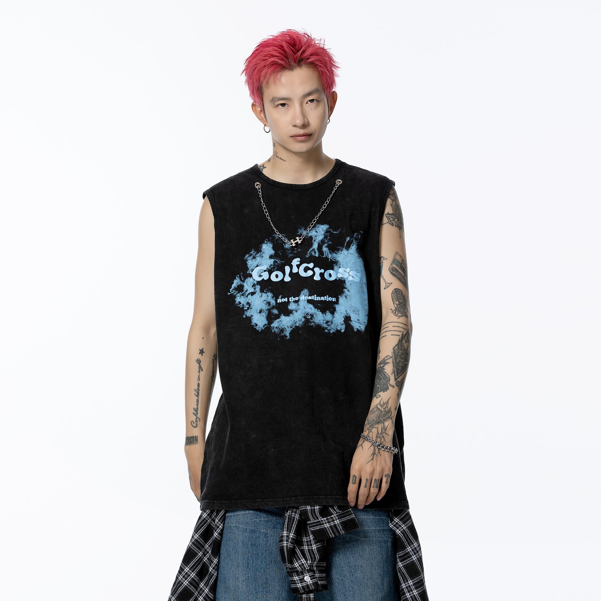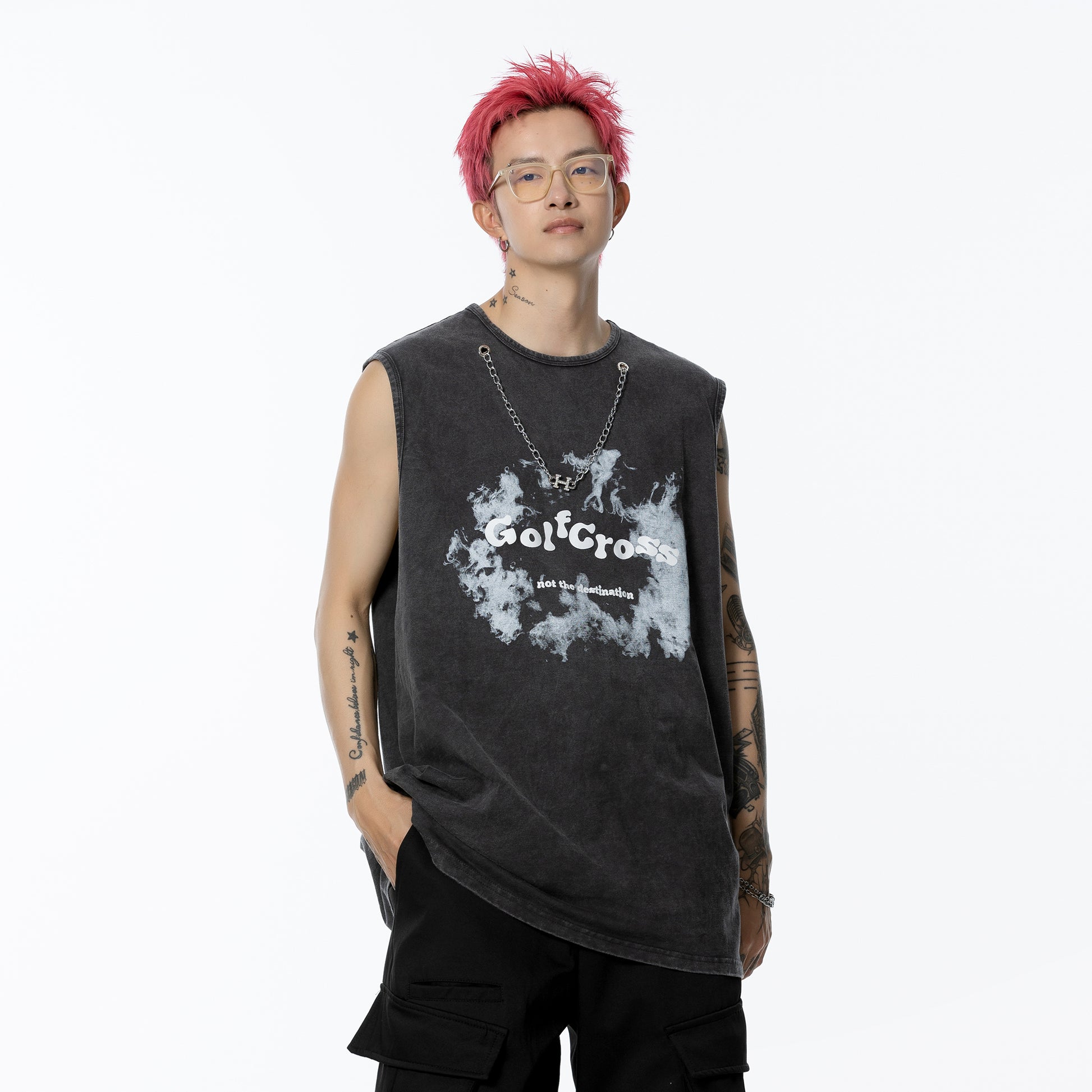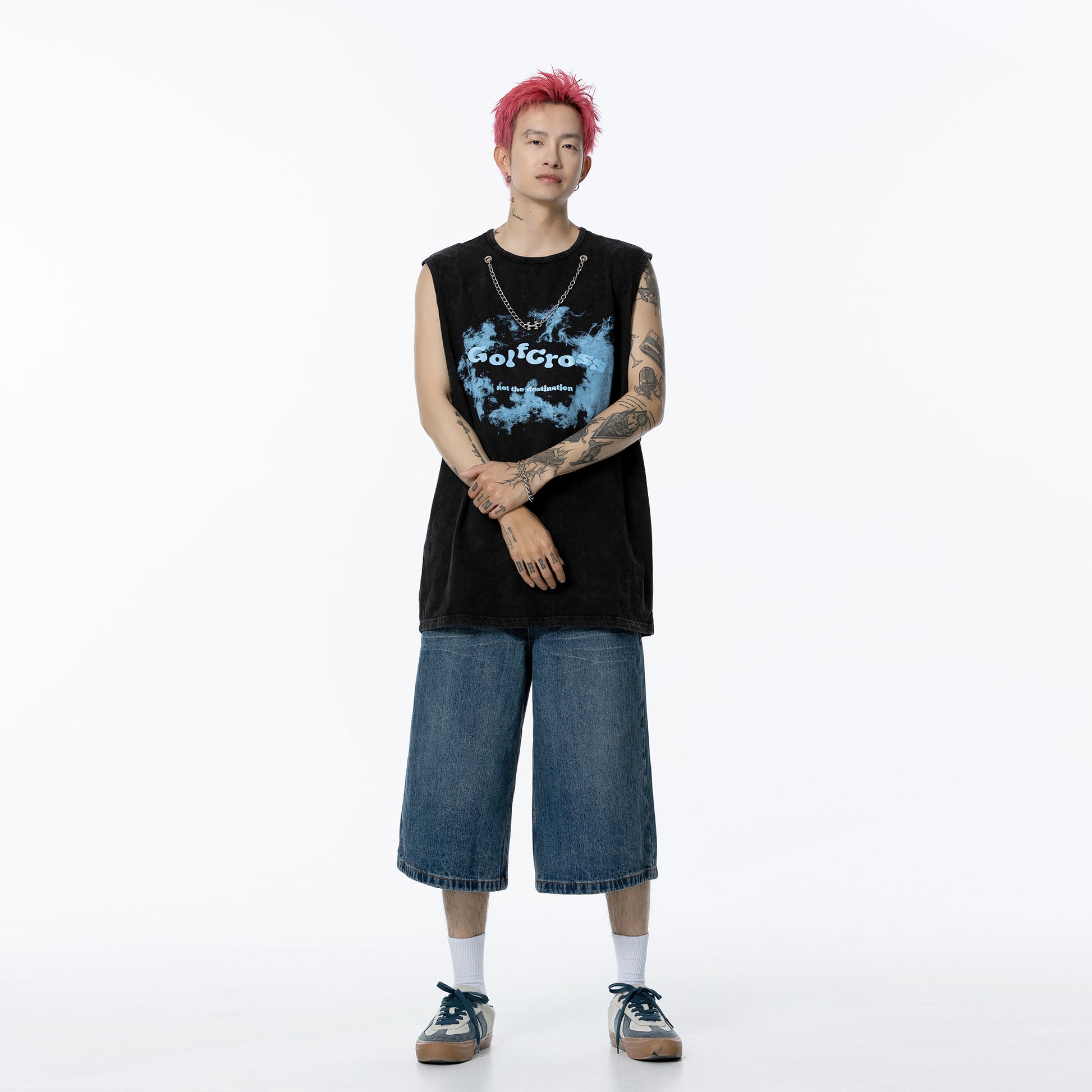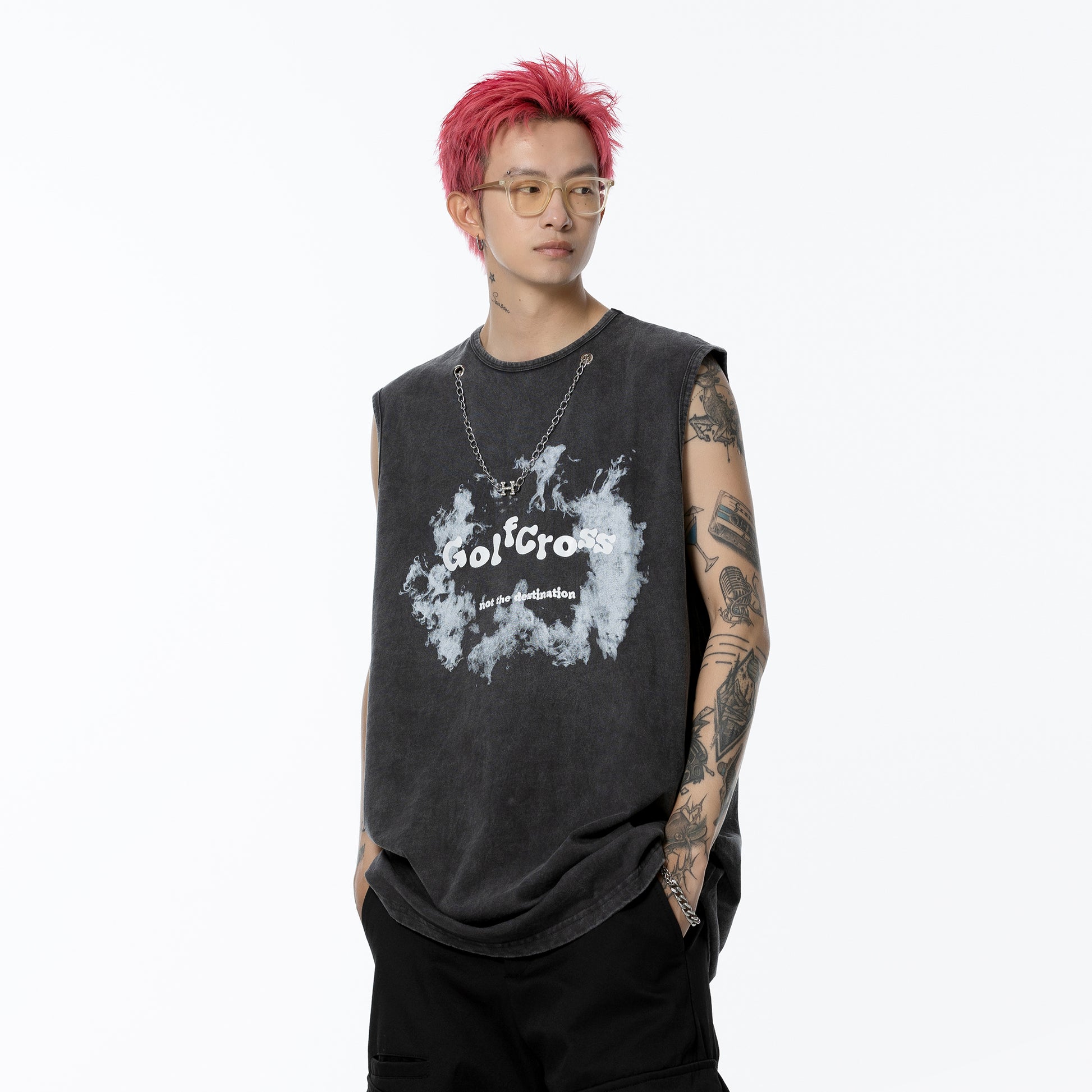 Майка с принтом букв и графическими элементами, выполненная из 100% хлопка. Идеальна для лета, свободный крой и комфортная посадка, обеспечивают отличную воздухопроницаемость.