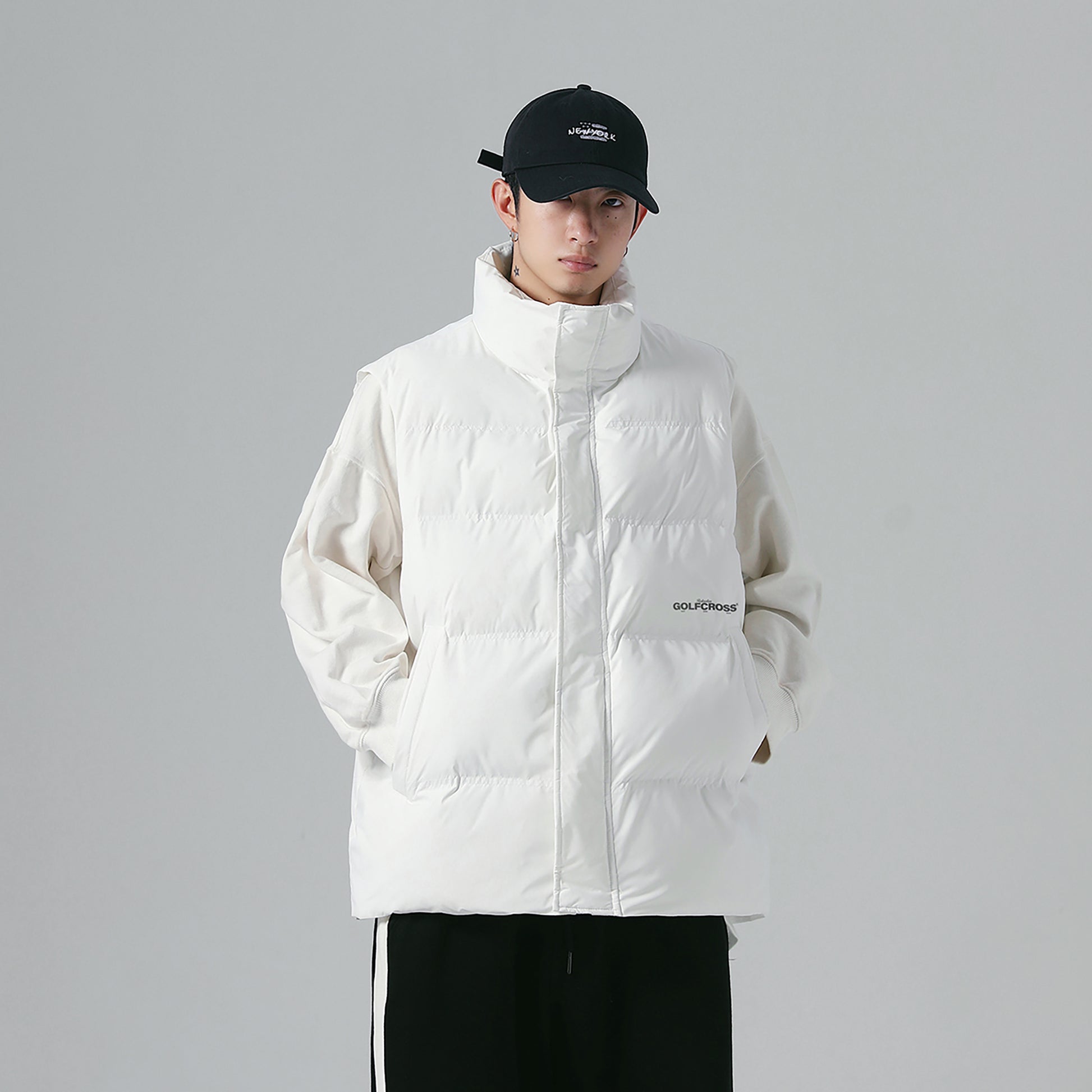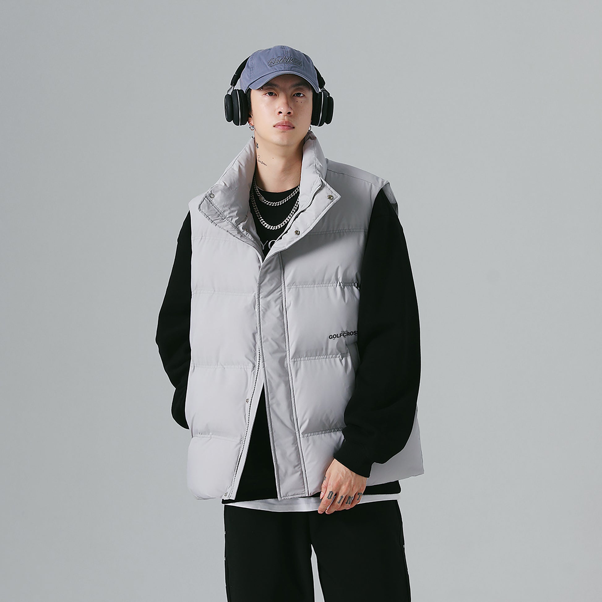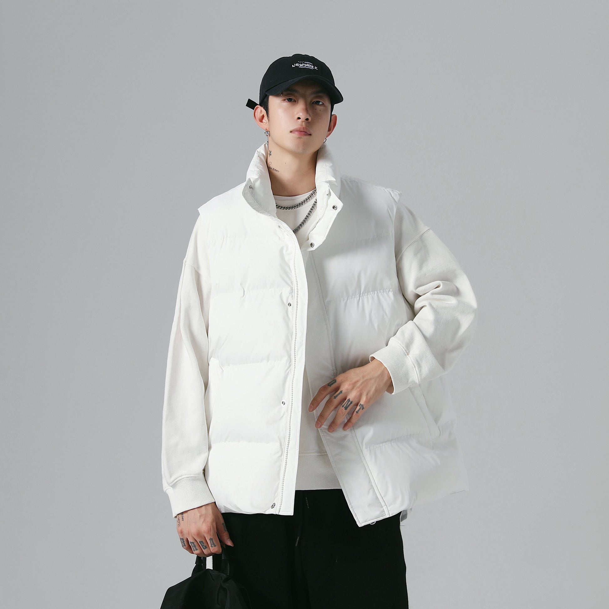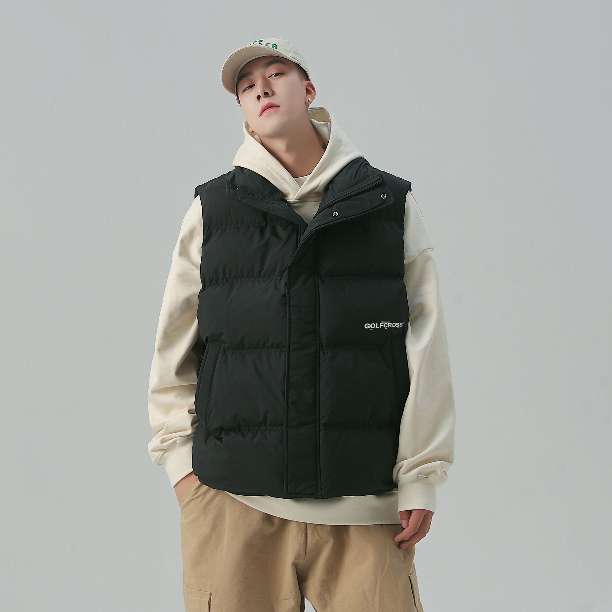 Объёмная утепленная модель-пуховик без рукавов с воротником-стойкой, наполненная высококачественным пухом белой утки. Универсальный жилет с логотипом бренда и застёжкой-молнией обеспечивает тепло и комфорт в холодную погоду.