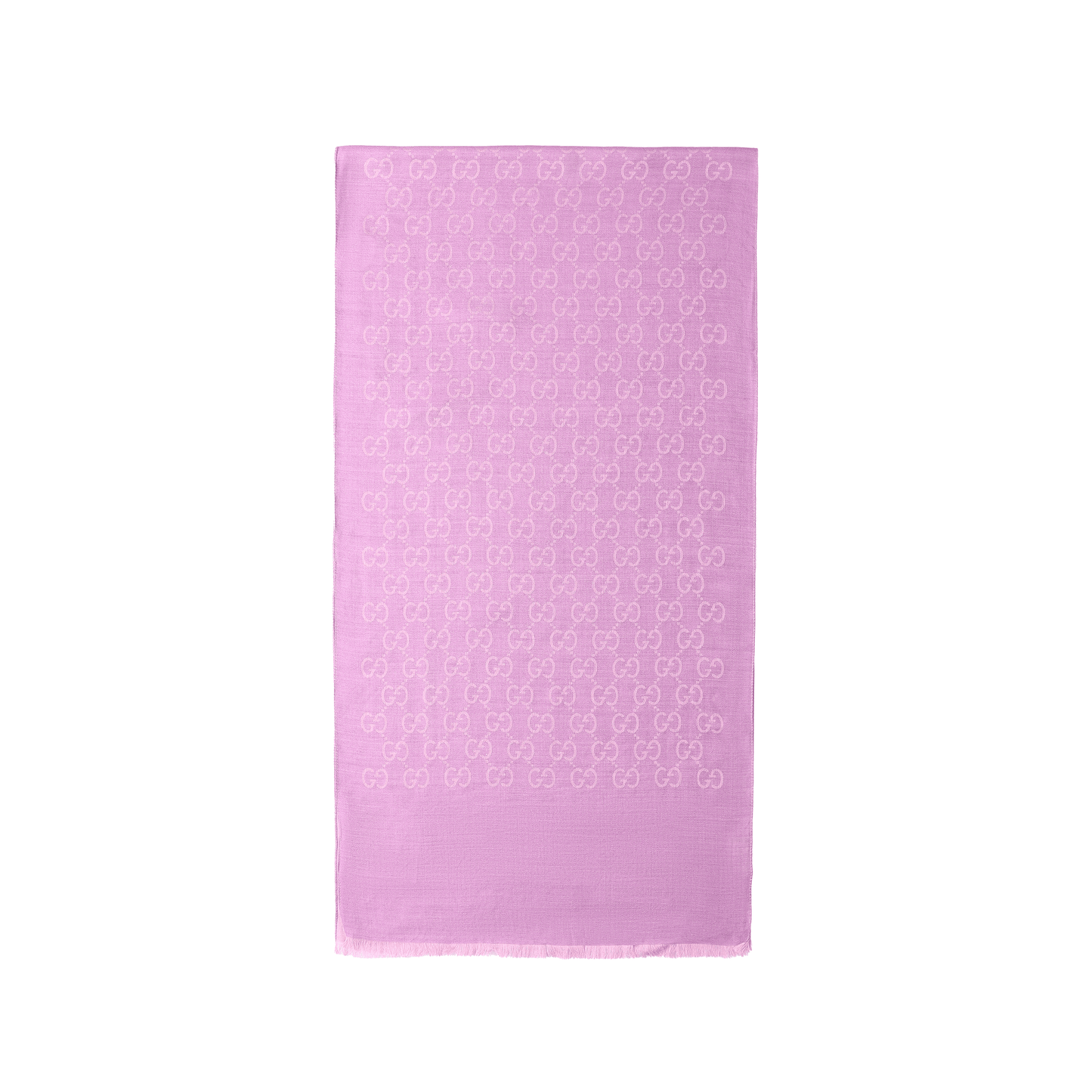 Шерстяной бархатный шарф с плетением и цветочным узором, украшенный логотипом "Двойной G", выполненный в фиолетовом цвете. Эта стильная модель подходит как для мужчин, так и для женщин, сочетая в себе элегантность и комфорт. Шарф идеально добавляет акцент к любому образу и обеспечивает тепло в холодное время года.