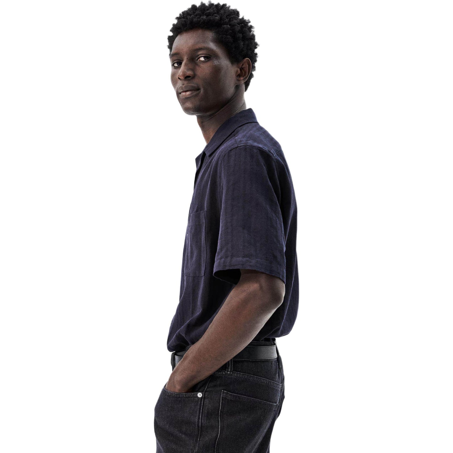 Эта повседневная рубашка с короткими рукавами выполнена в темно-синем цвете и изготовлена из мягкого и дышащего материала. Удобный крой обеспечивает комфорт и свободу движений, что делает ее идеальным выбором для теплых дней. Легкая ткань отлично подходит для летнего гардероба, а универсальный стиль позволяет легко сочетать рубашку с джинсами или шортами для создания расслабленного образа.