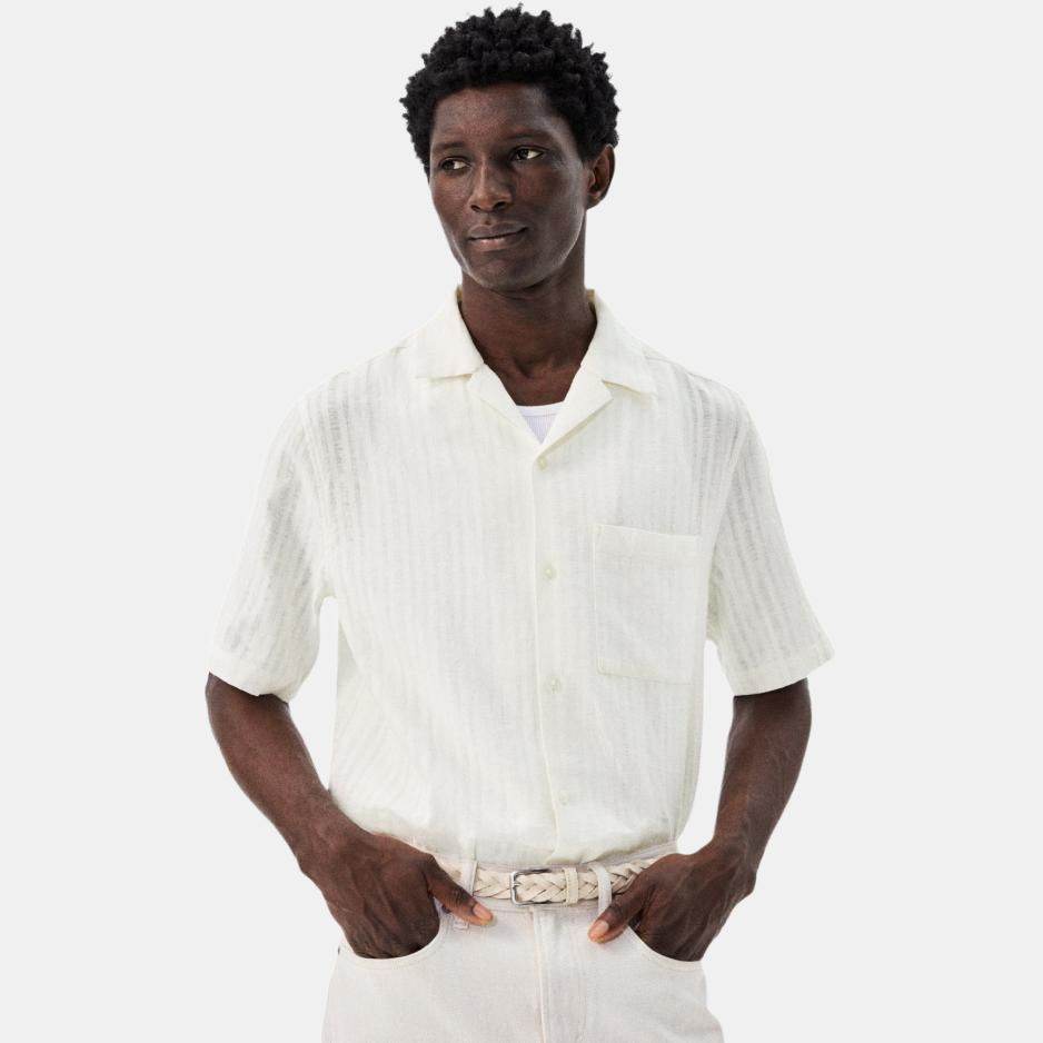 Эта кремовая однотонная рубашка с коротким рукавом предлагает мягкий и дышащий материал, обеспечивая комфорт для повседневного ношения. Стильная и универсальная, она идеально подходит для теплой погоды и различных сочетаний в гардеробе.