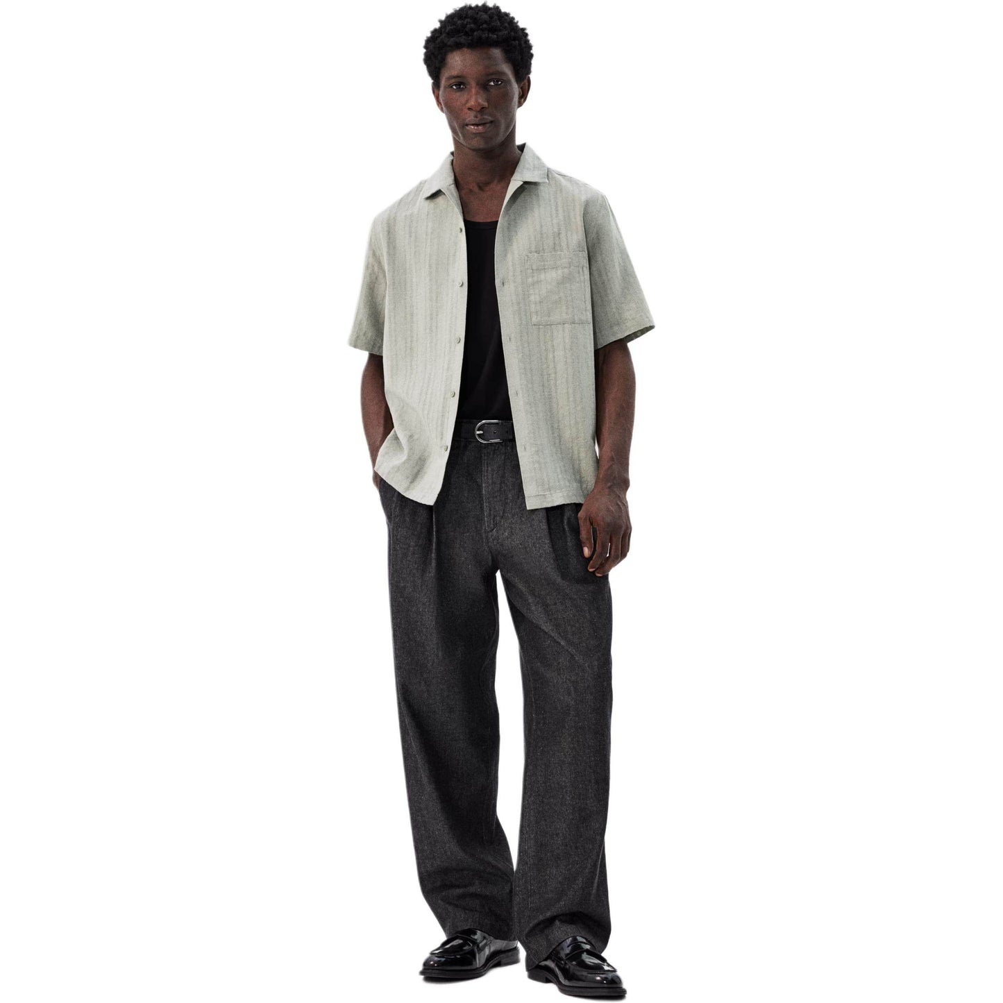 Эта повседневная рубашка с короткими рукавами выполнена в серо-зеленом цвете и изготовлена из мягкого, дышащего материала. Удобный крой предоставляет комфорт и свободу движений, что делает её идеальным выбором для тёплых дней. Легкая ткань отлично подходит для повседневного ношения и позволяет легко сочетать рубашку с джинсами или шортами для создания стильного образа.