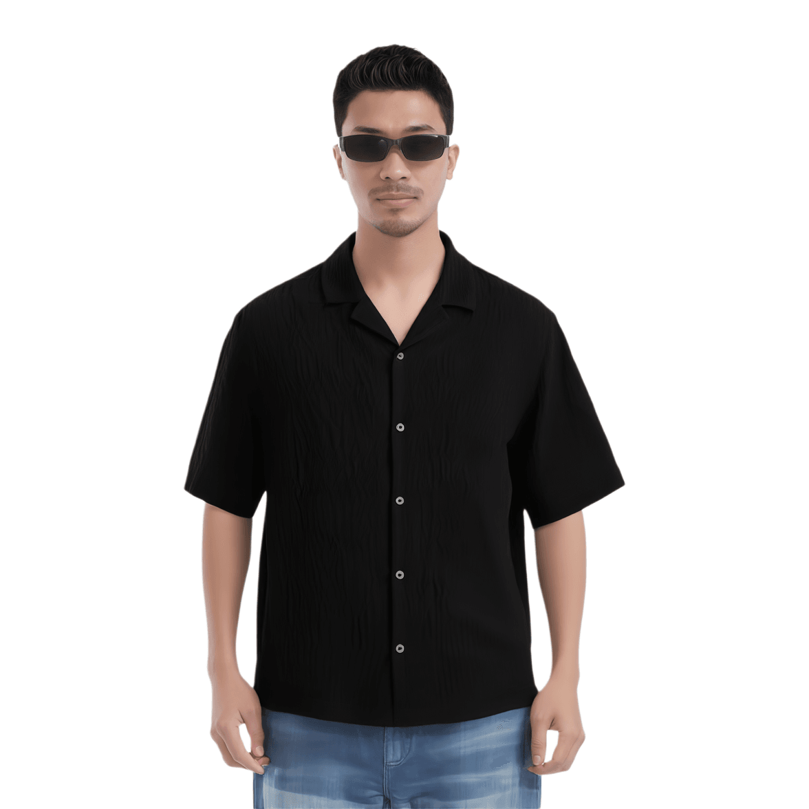 Эта свободная плиссированная рубашка с короткими рукавами выполнена в классическом черном цвете. Ее уникальный плиссированный дизайн придает намек на оригинальность, а лёгкий материал обеспечивает комфорт и освежает. Она прекрасно подходит для повседневного ношения, легко комбинируется с джинсами или брюками, что делает ее идеальным выбором для мужчин, стремящихся к стильному и непринужденному образу.