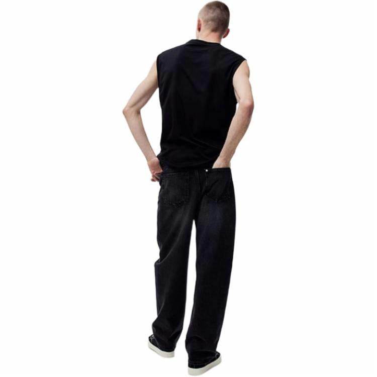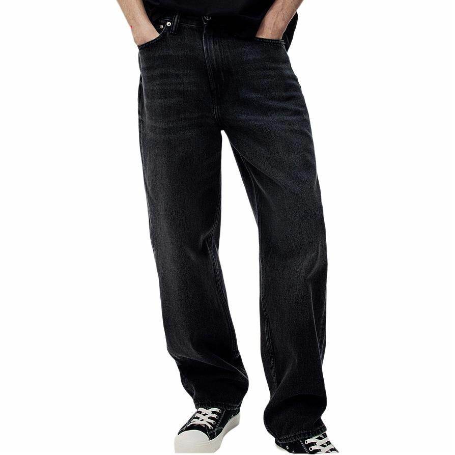 Свободные прямые джинсы с средней посадкой, выполненные в черном цвете. Удобные и стильные, идеально подходят для повседневной носки и создания различных образов.