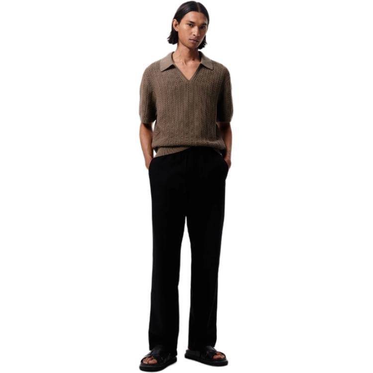 Поло H&M выполнено из удобного трикотажа в сплошном цвете с V-образным вырезом и короткими рукавами. Модель в темно-бежевом цвете идеально подходит для повседневного ношения, сочетая стиль и комфорт.